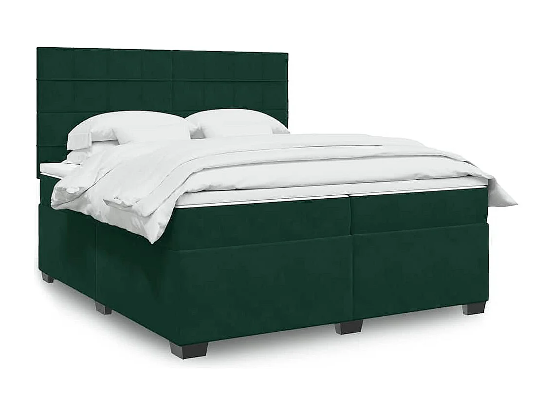 Cama com molas/colchão 200x200 cm veludo verde-escuro