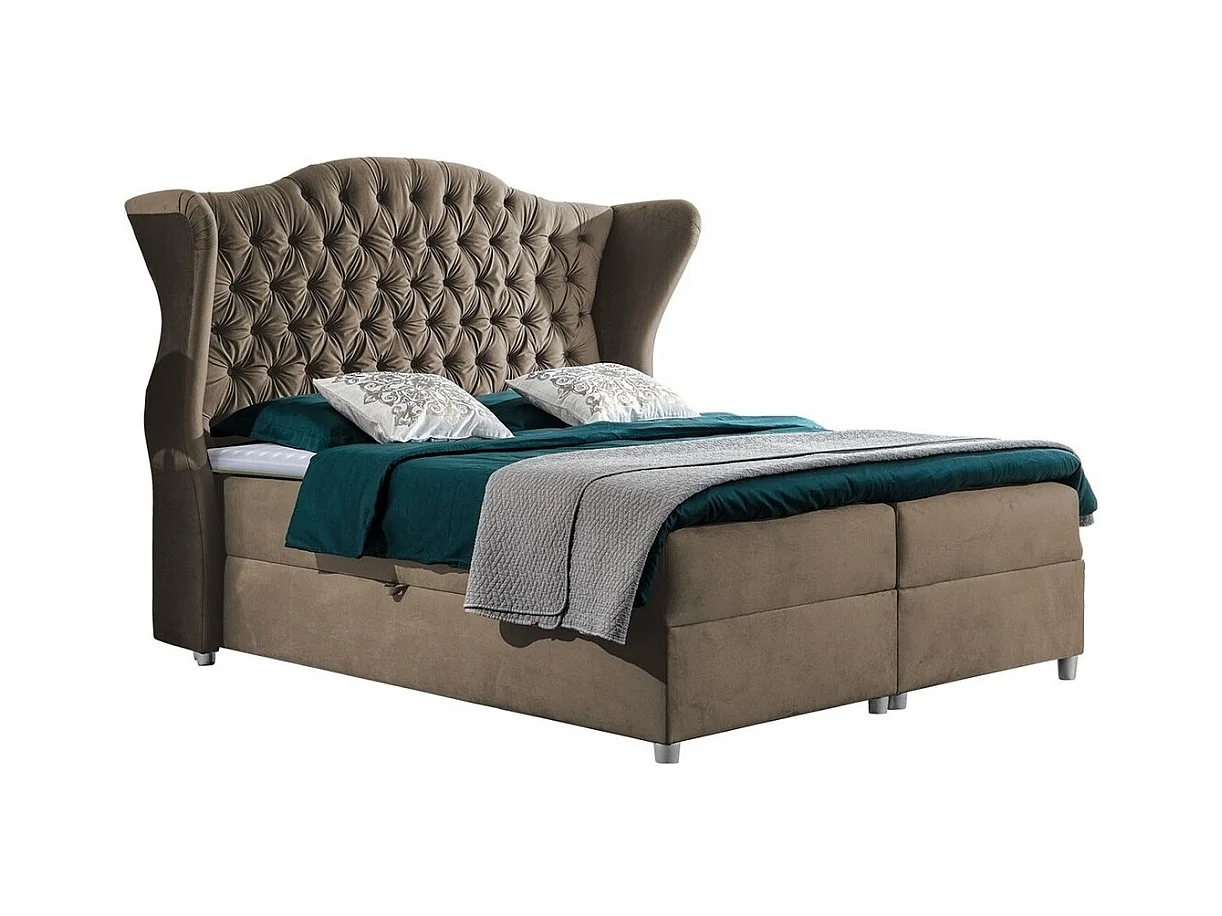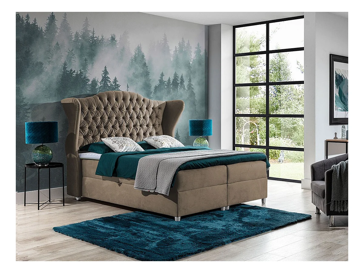 Cama continental Baltimore 158, Casal, Castanho claro, Tecido