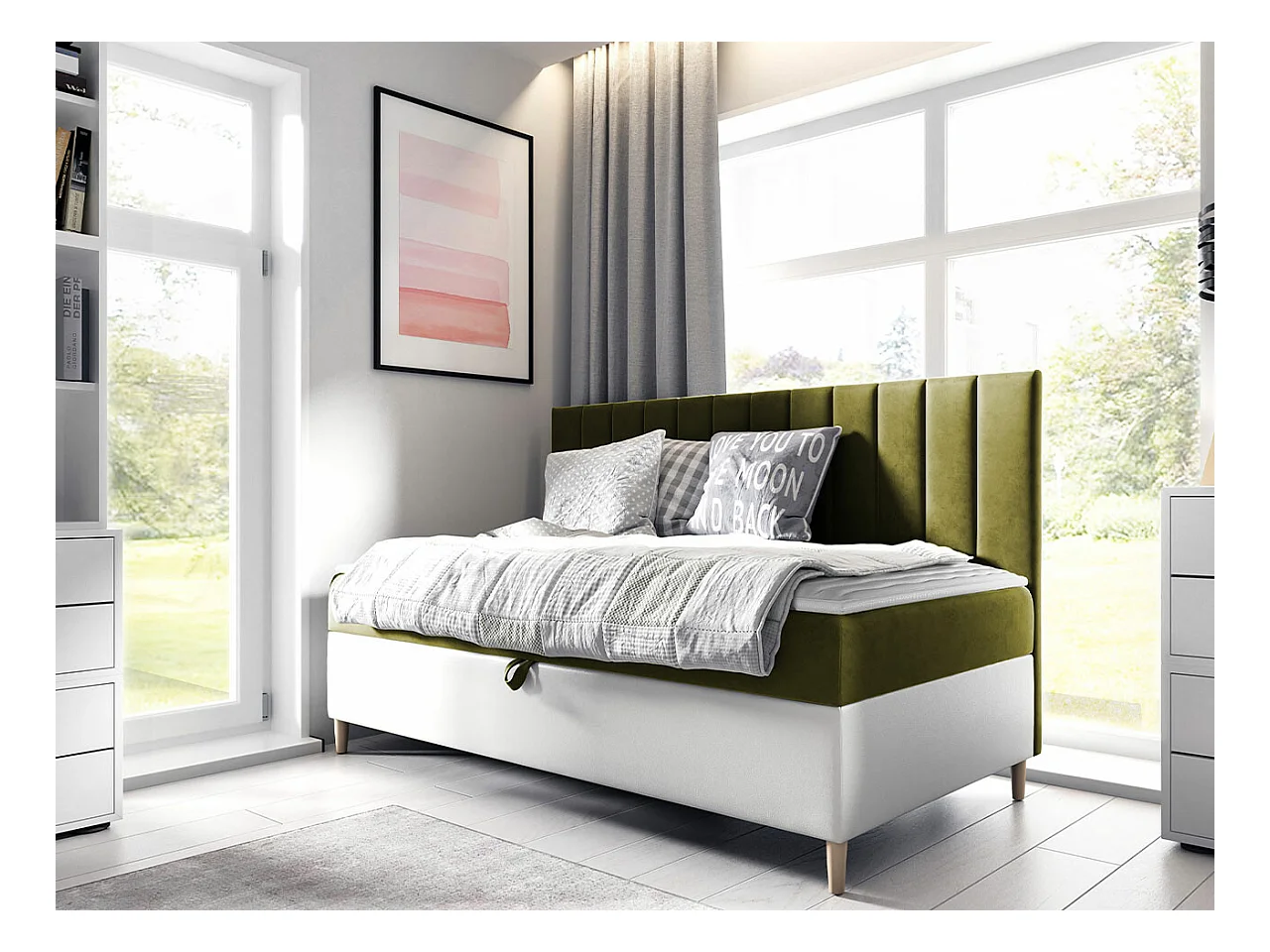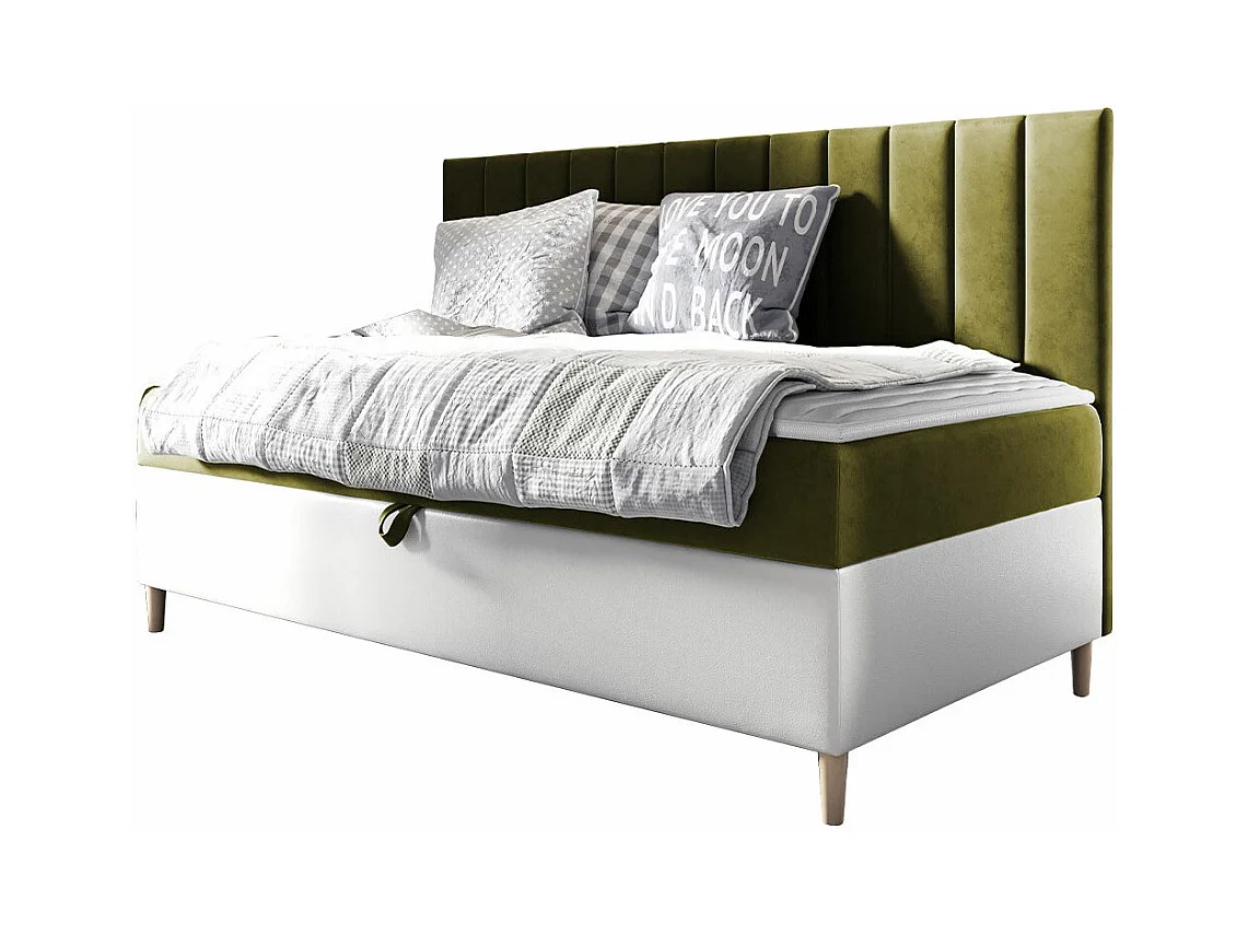 Cama continental Baltimore 165, Solteiro, Verde, Couro Ecológico