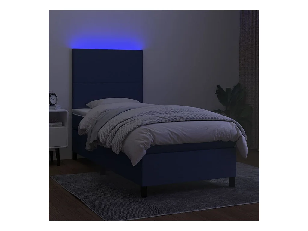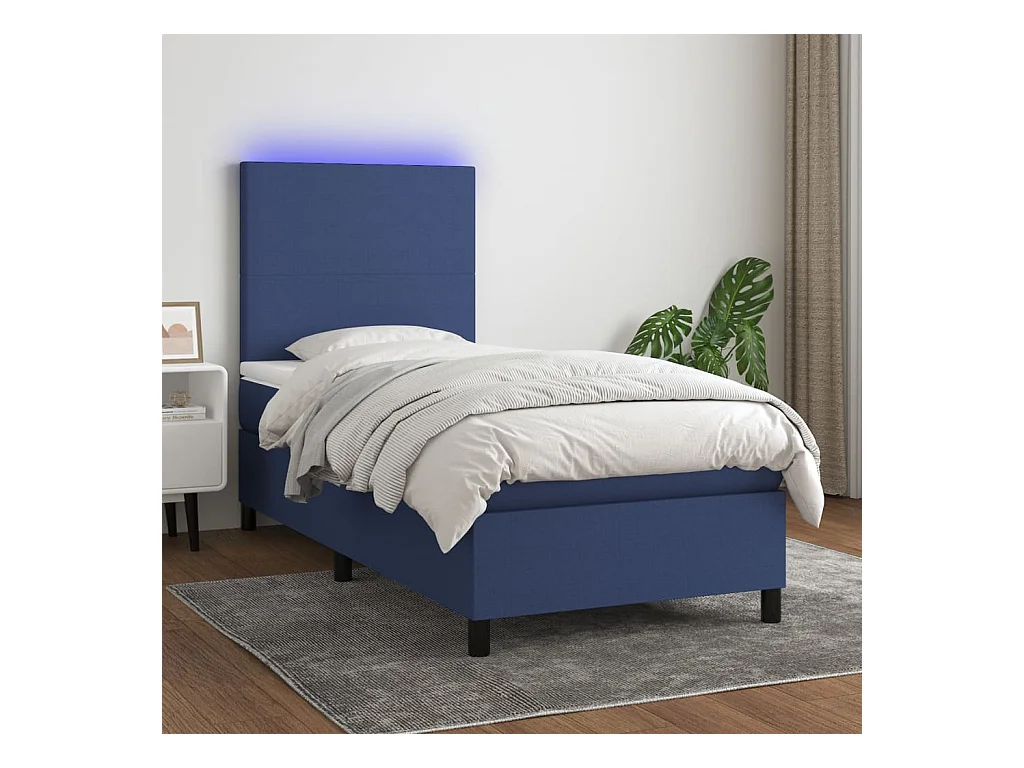 Cama continental c/ colchão e LED 80x200 cm tecido azul PT377073