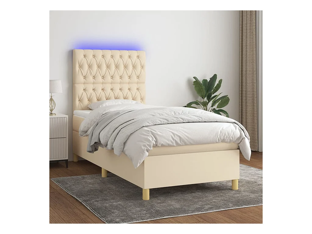 Cama continental c/ colchão e LED 80x200 cm tecido cor creme PT350028