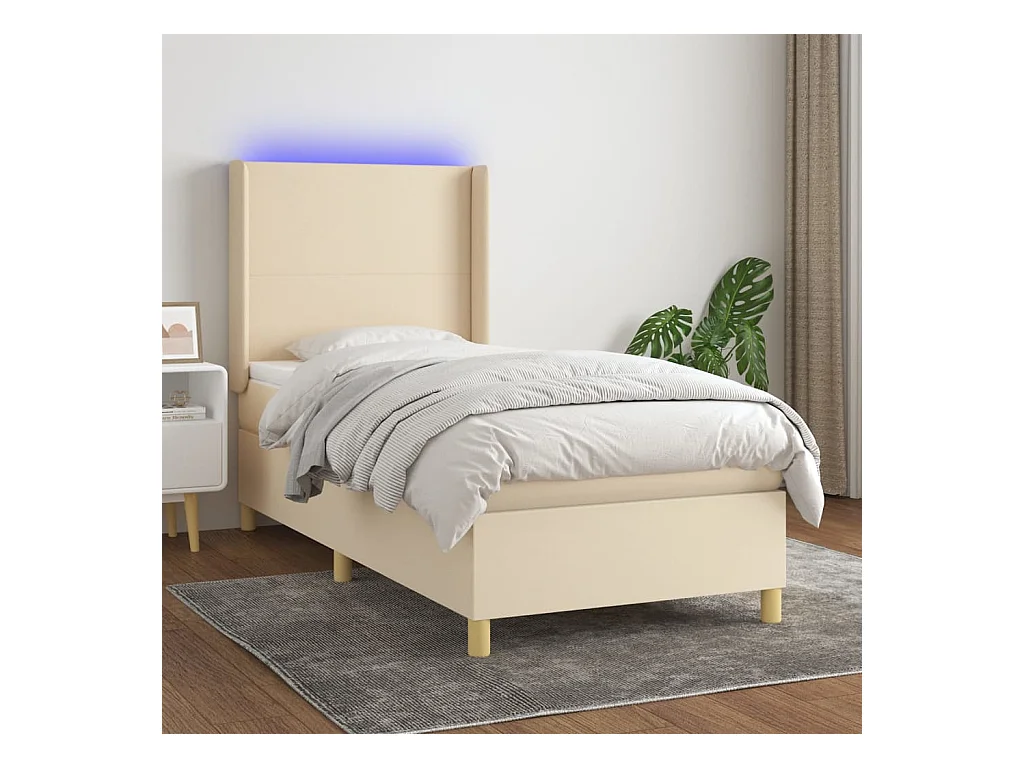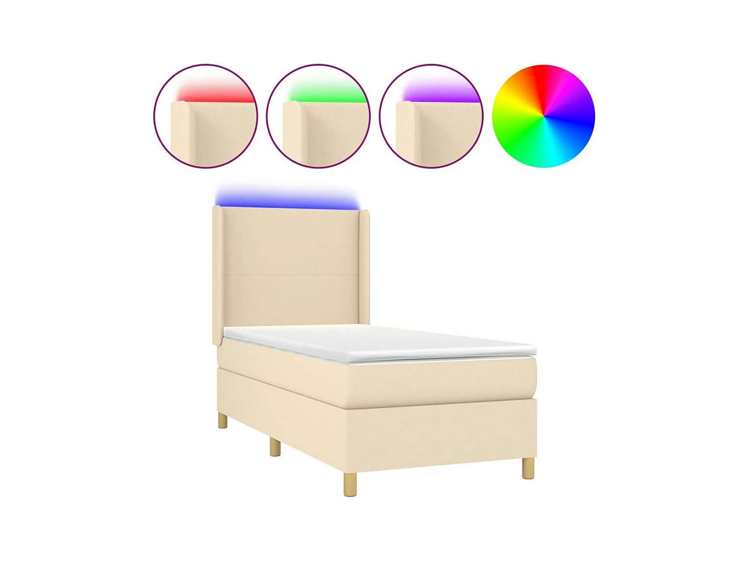 Cama continental c/ colchão e LED 80x200 cm tecido cor creme PT350028