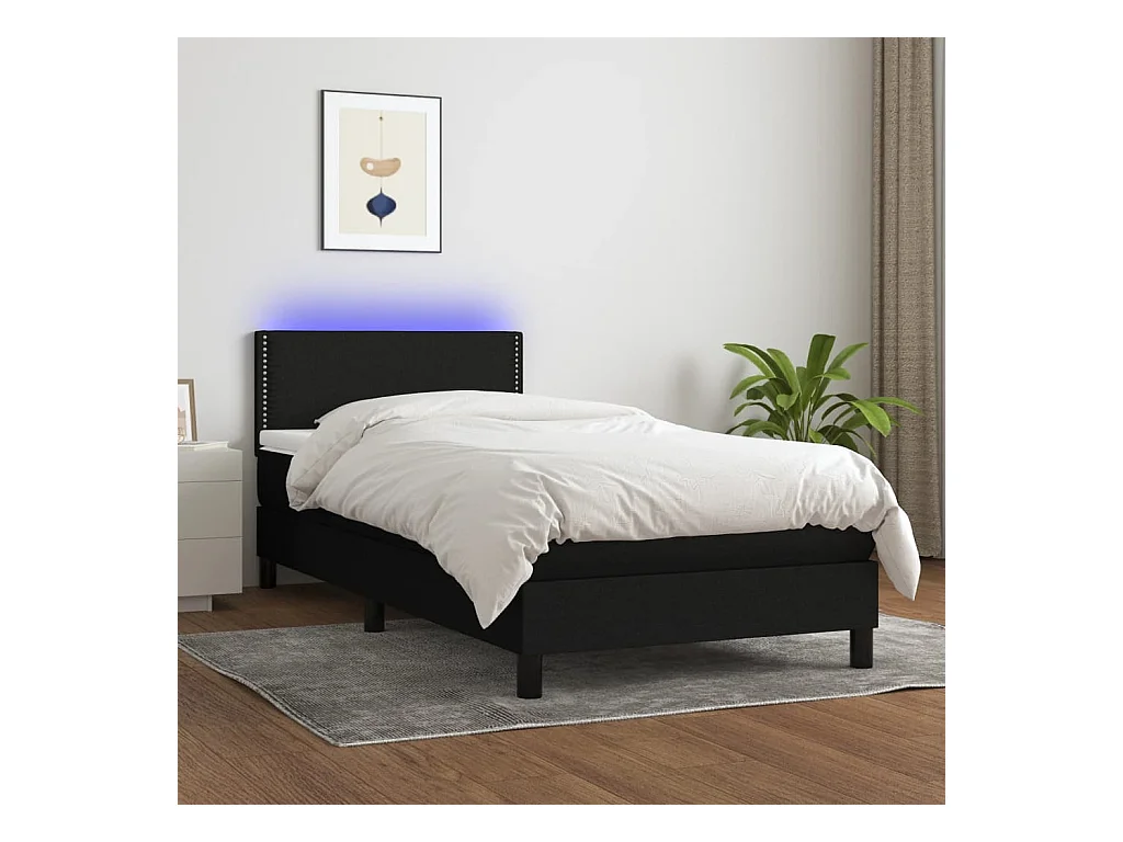 Cama continental c/ colchão e LED 80x200 cm tecido preto PT440111