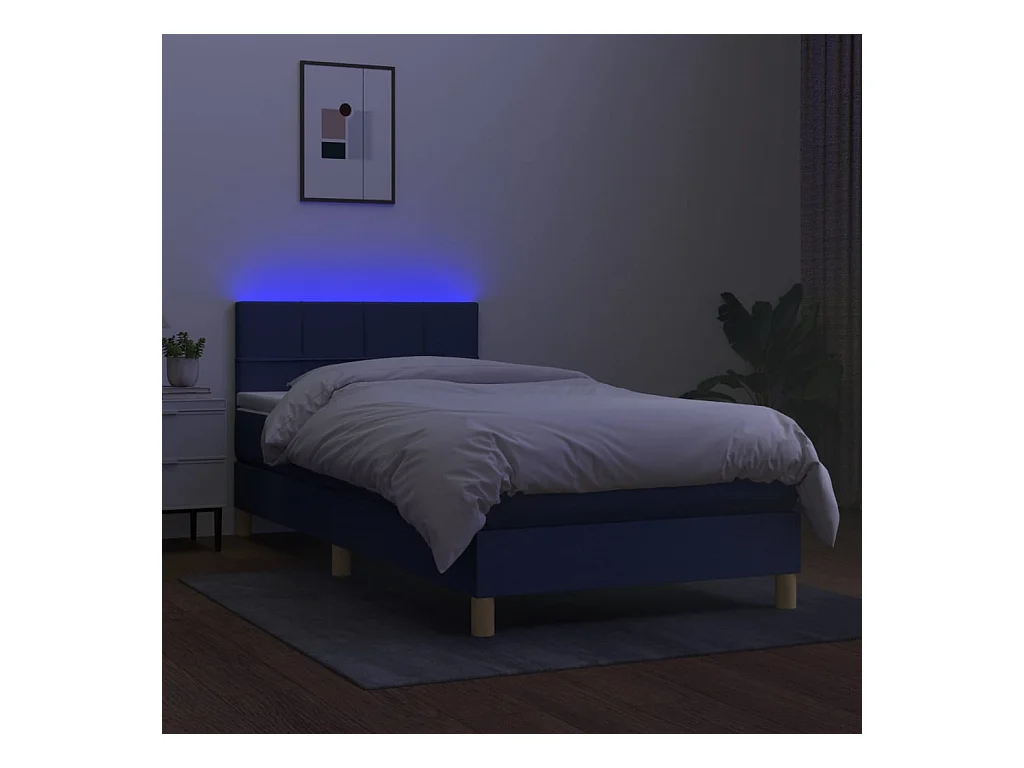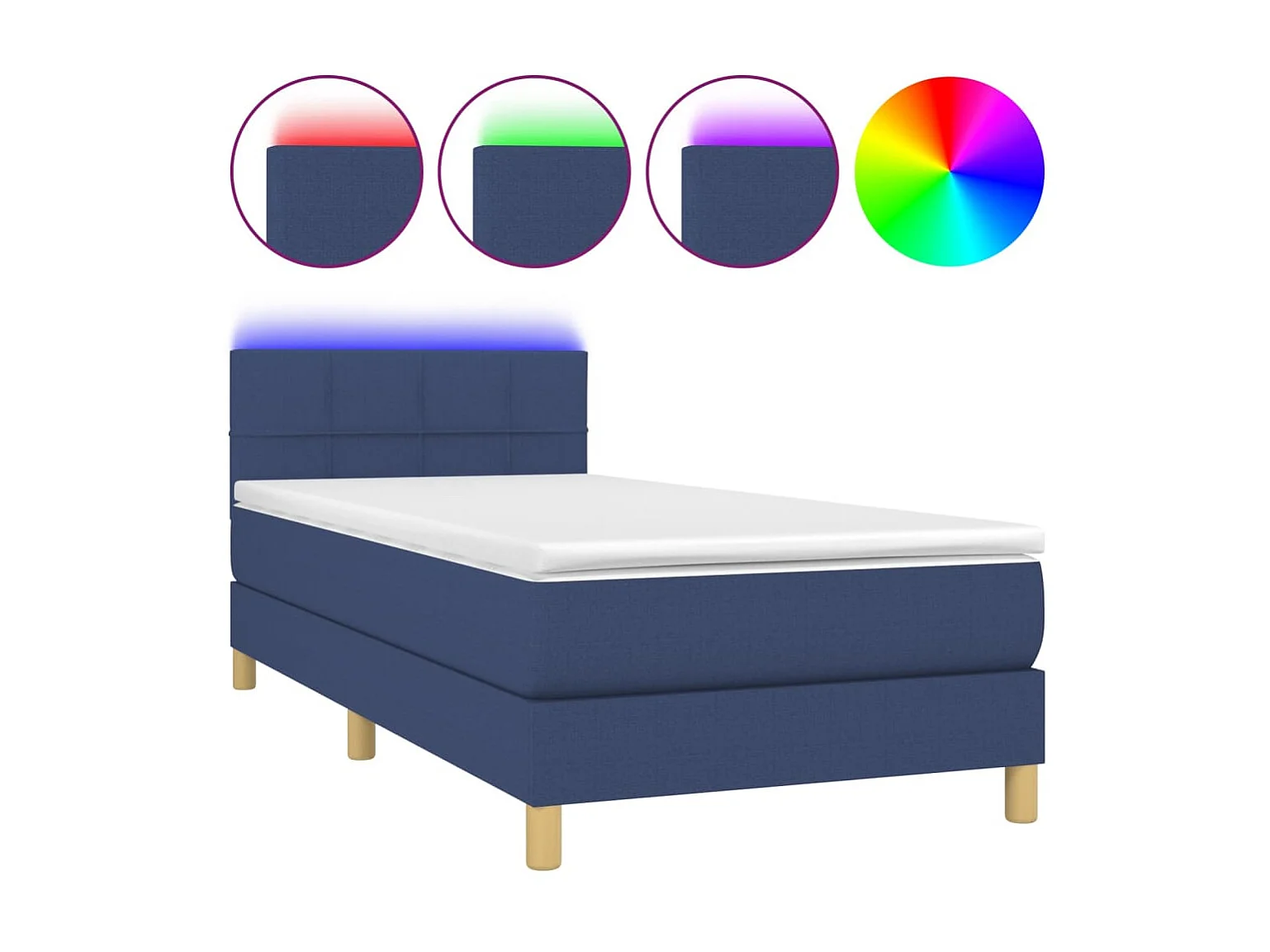 Cama continental c/ colchão e LED 90x200 cm tecido azul PT285519