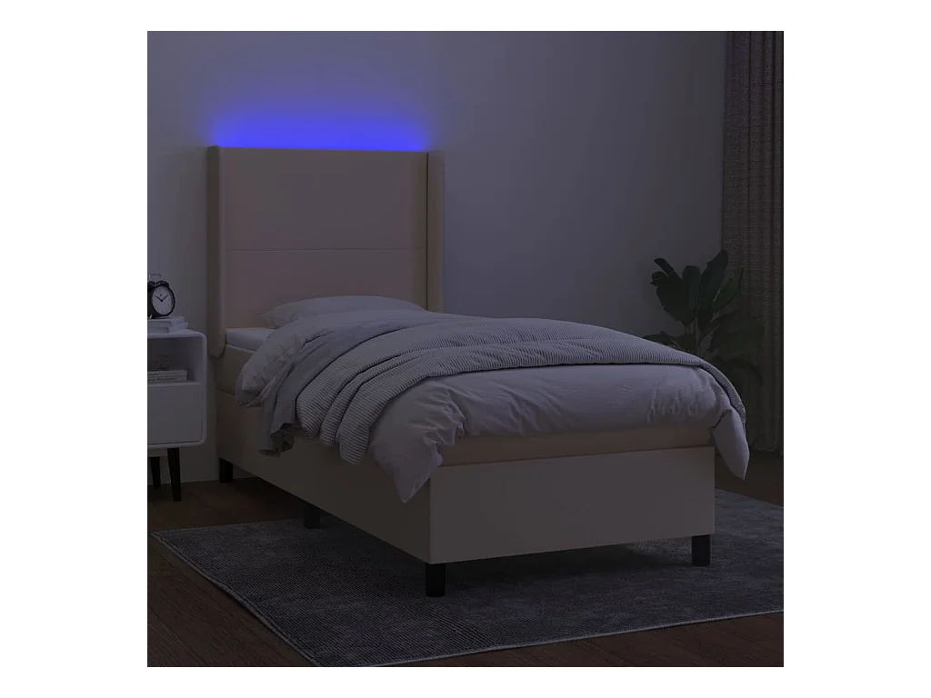 Cama continental c/ colchão e LED 90x200 cm tecido cor creme PT148546