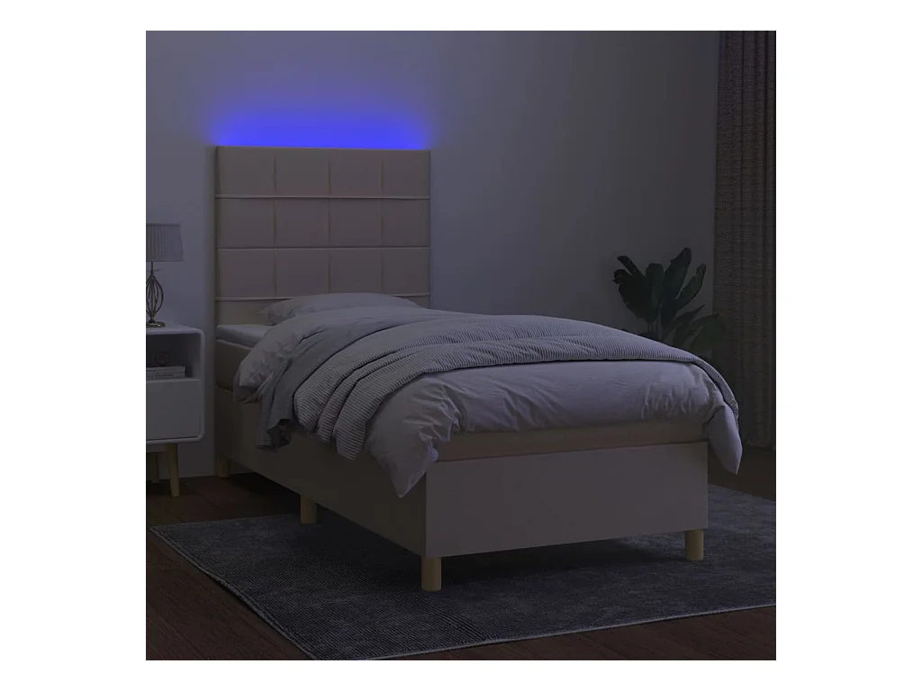 Cama continental c/ colchão e LED 90x200 cm tecido cor creme PT929271