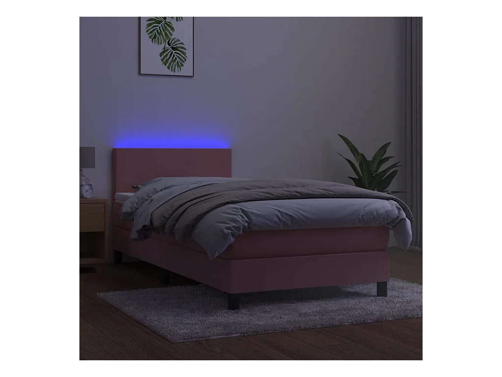 Cama continental c/ colchão/LED 100x200 cm veludo rosa PT467974