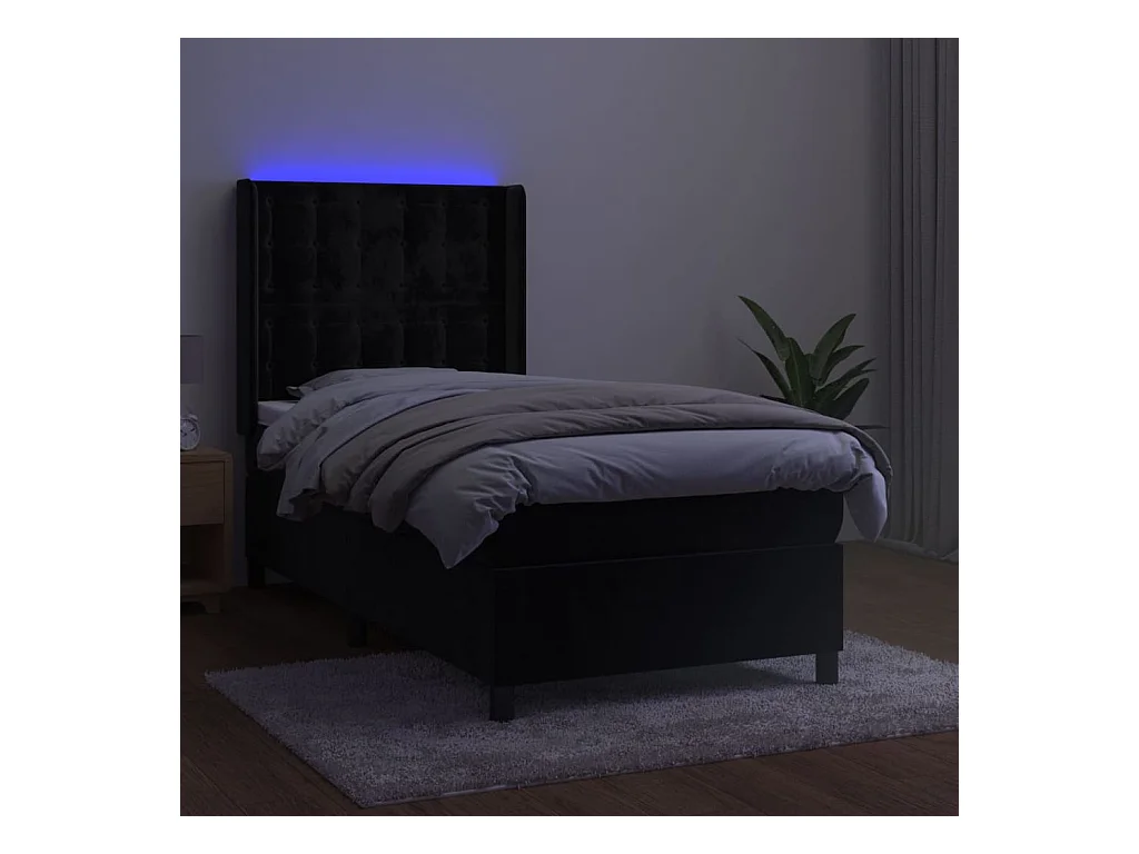 Cama box spring c/ colchão/LED 80x200 cm veludo preto PT428107