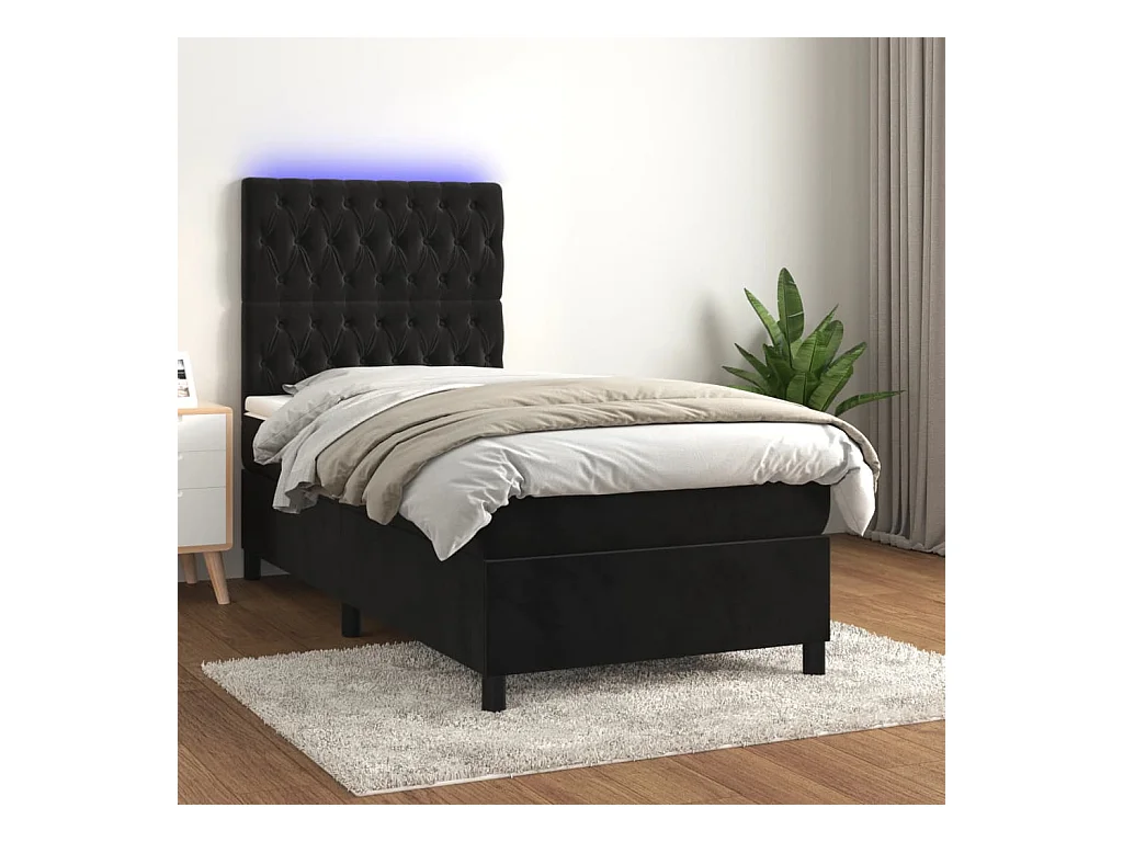 Cama box spring c/ colchão/LED 80x200 cm veludo preto PT478079