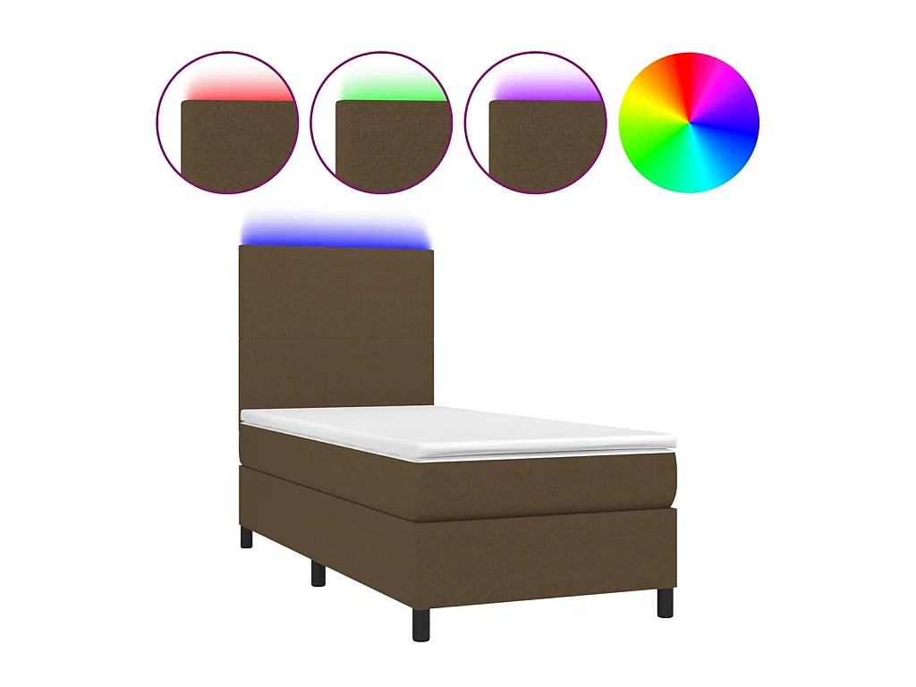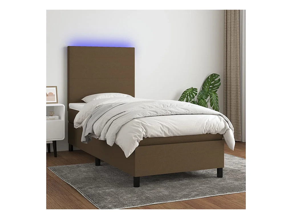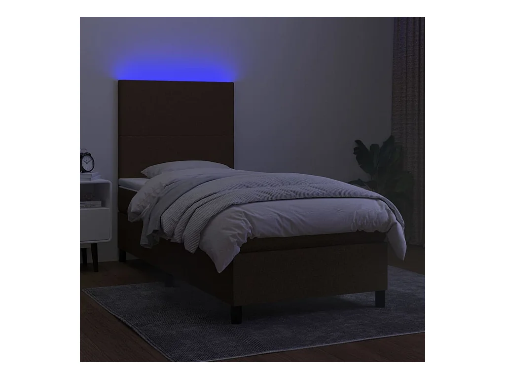 Cama continental c/ colchão/LED 80x200cm tecido castanho-escuro PT111177