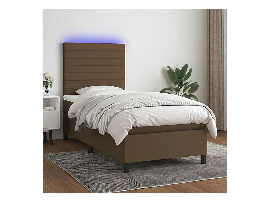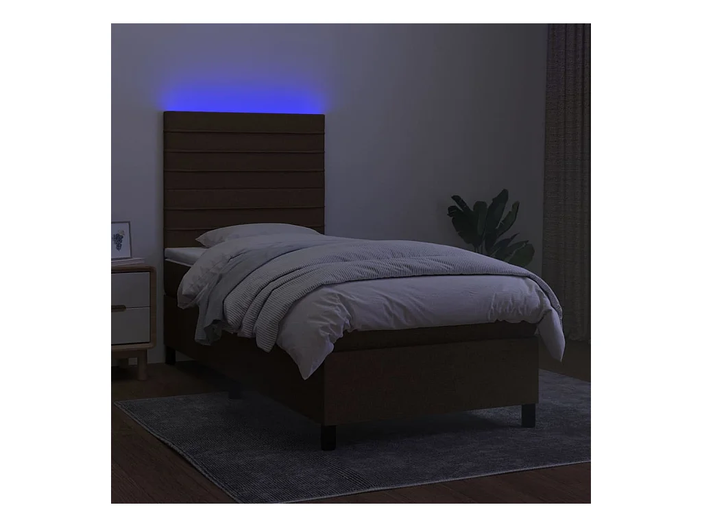 Cama continental c/ colchão/LED 80x200cm tecido castanho-escuro PT924550