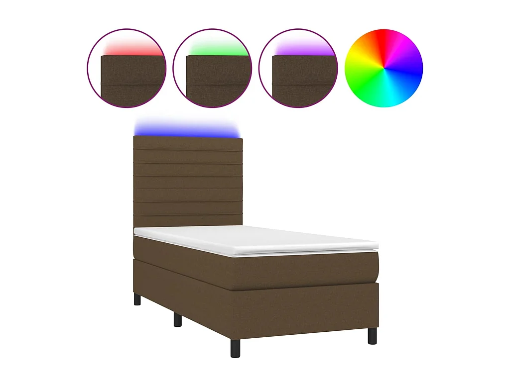 Cama continental c/ colchão/LED 80x200cm tecido castanho-escuro PT111177