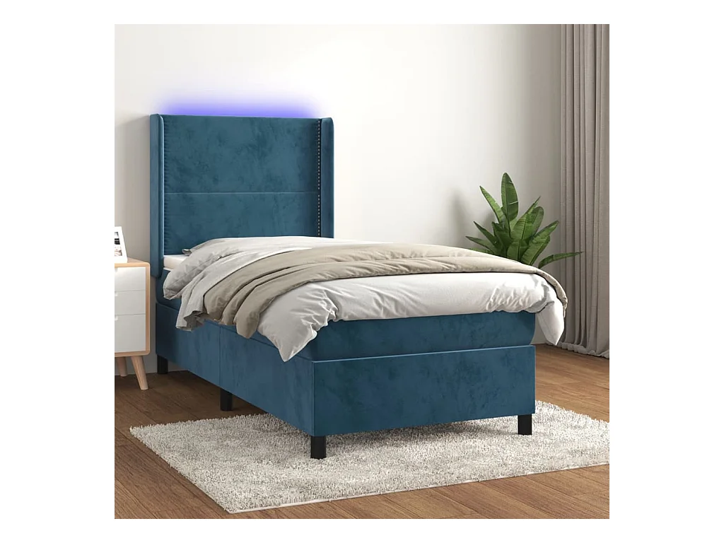 Cama continental com molas+ colchão 90x190 cm veludo azul-escuro PT772172