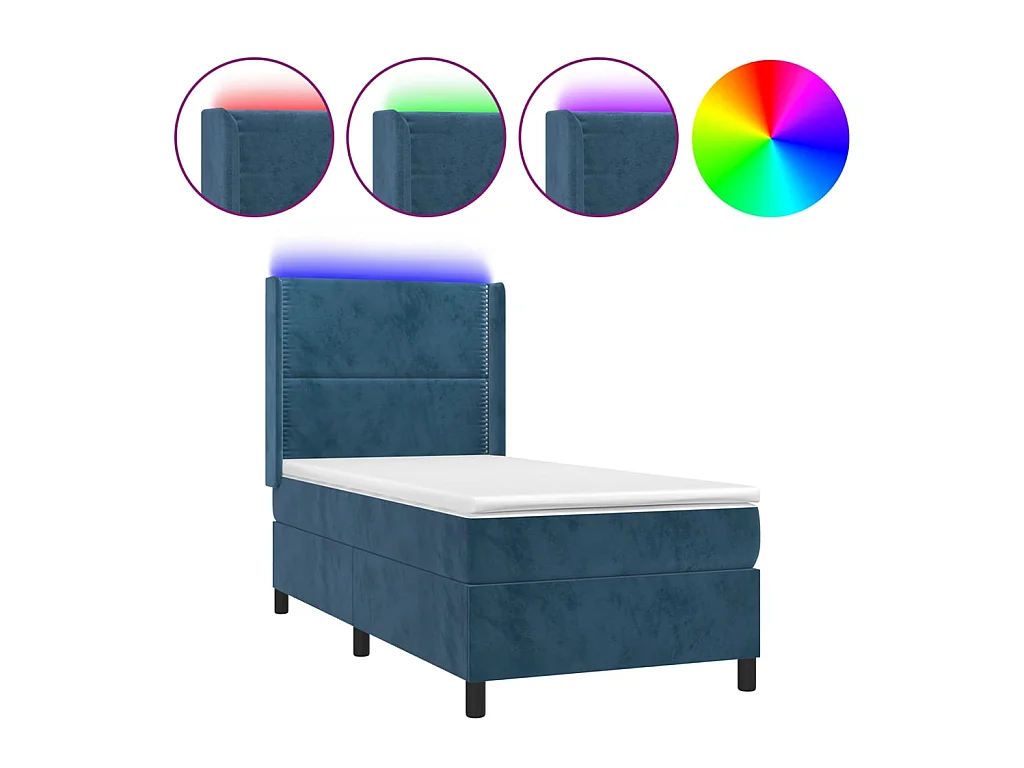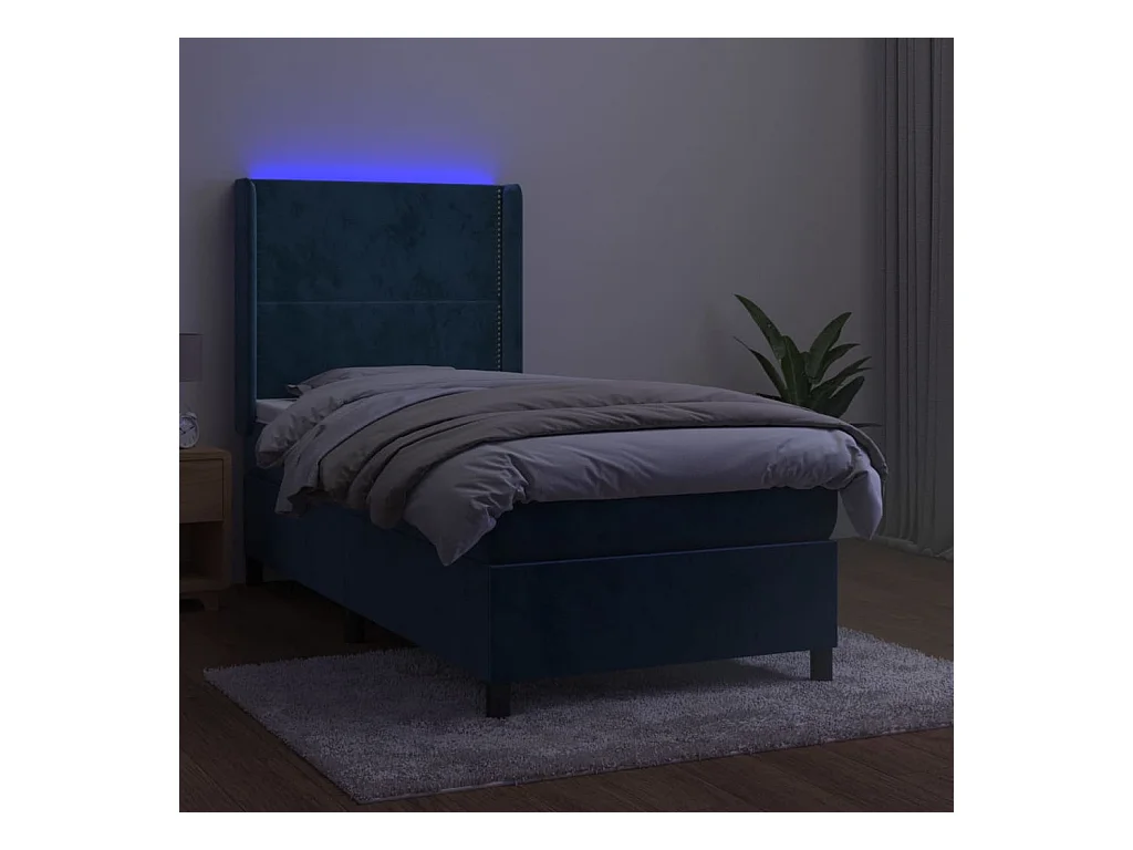 Cama continental c/ colchão/LED 90x190 cm veludo azul-escuro PT492900