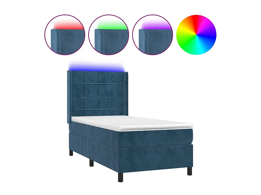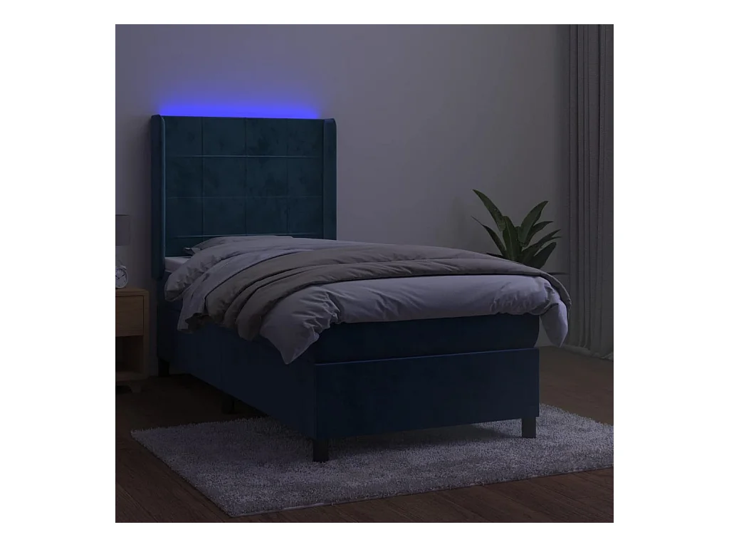 Cama continental c/ colchão/LED 90x190 cm veludo azul-escuro PT786323