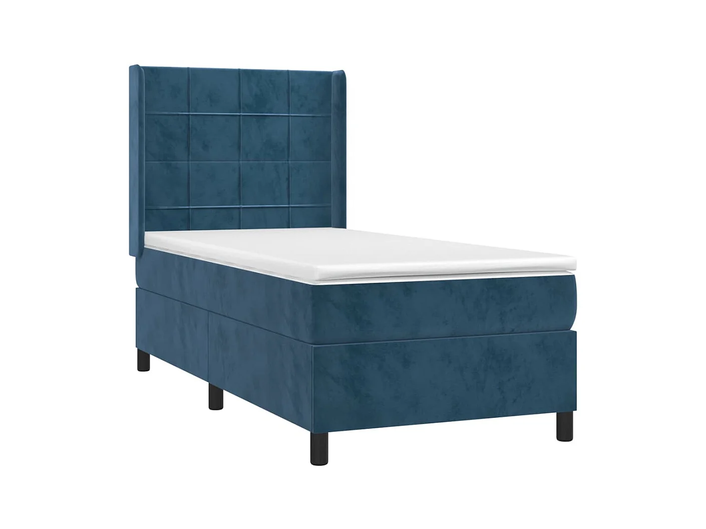 Cama continental com molas+ colchão 90x190 cm veludo azul-escuro PT234146