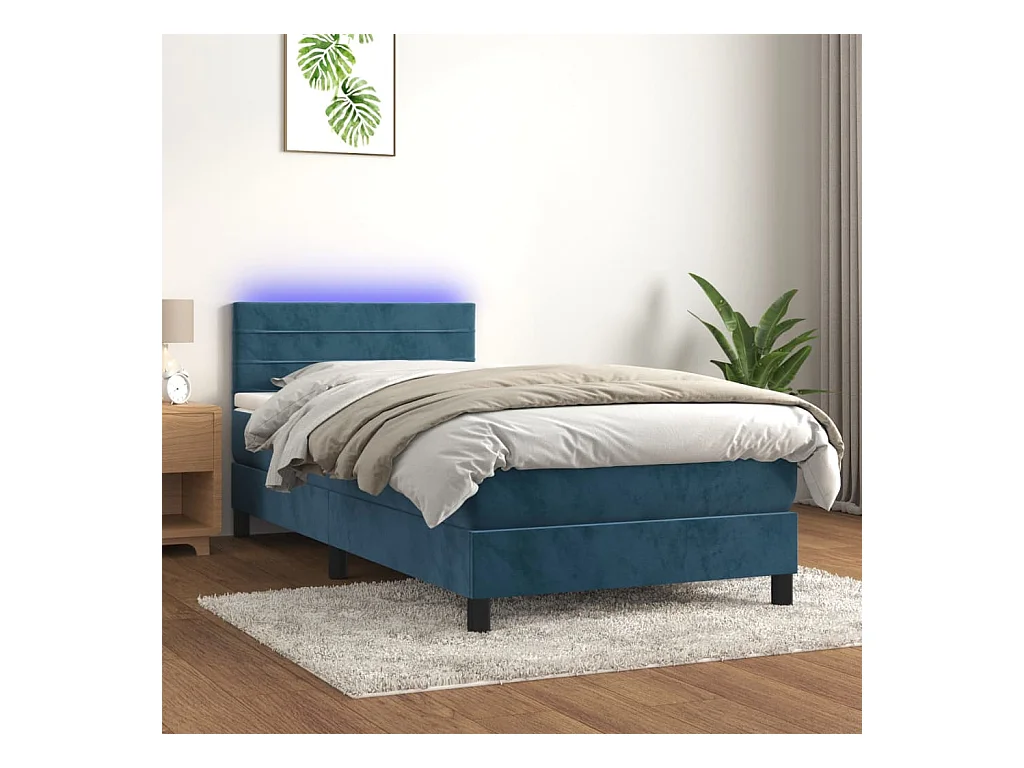 Cama continental com molas+ colchão 90x190 cm veludo azul-escuro PT744704