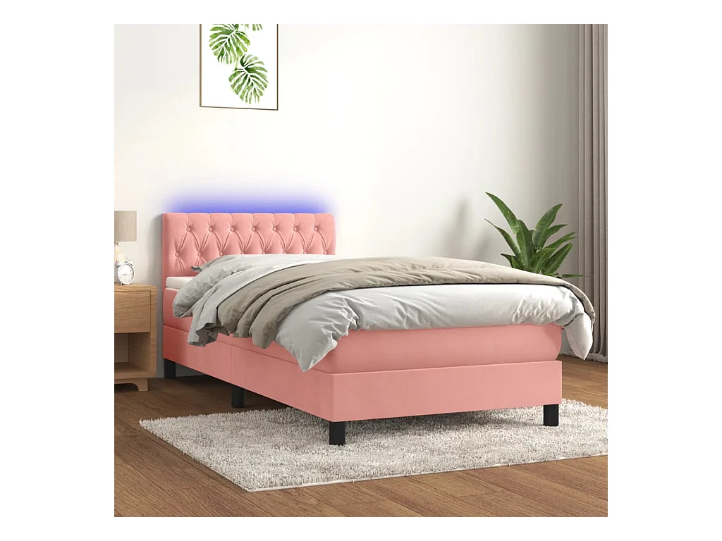 Cama continental com molas+ colchão 90x190 cm veludo rosa PT573429