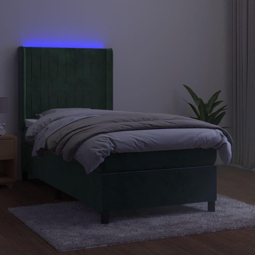 Cama continental c/ colchão/LED 90x190 cm veludo verde-escuro PT930803