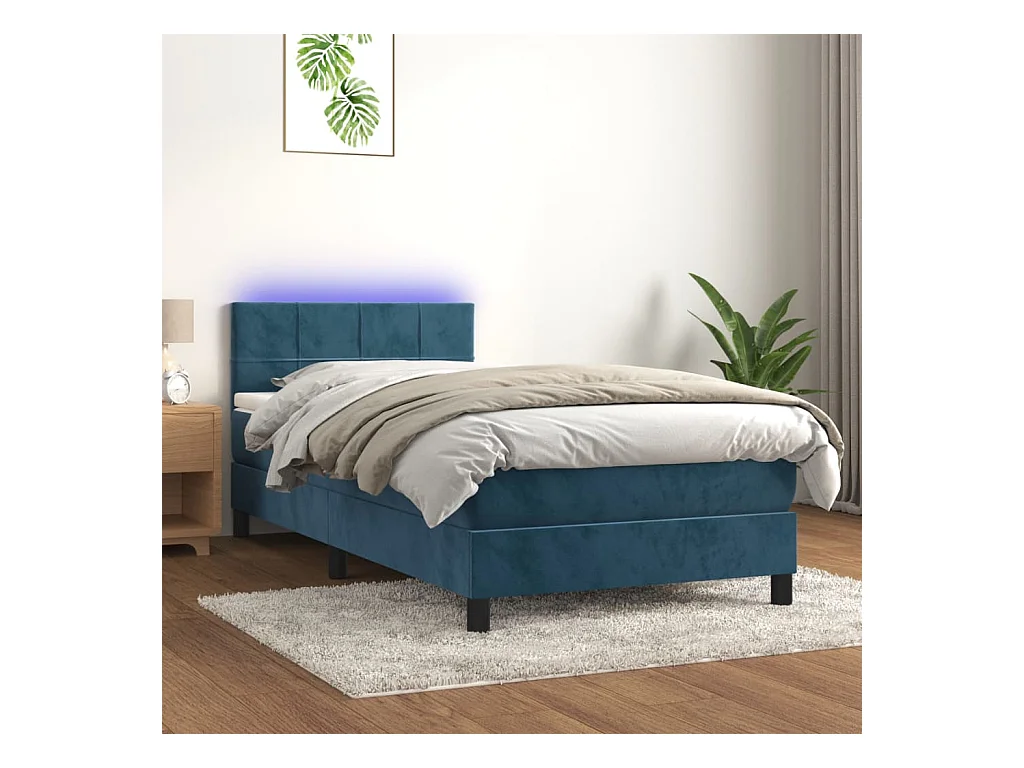 Cama continental c/ colchão/LED 90x200 cm veludo azul-escuro PT850440