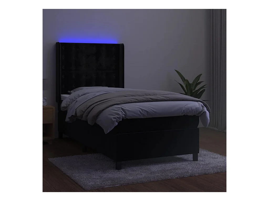Cama continental c/ colchão/LED 90x200 cm veludo preto PT541634