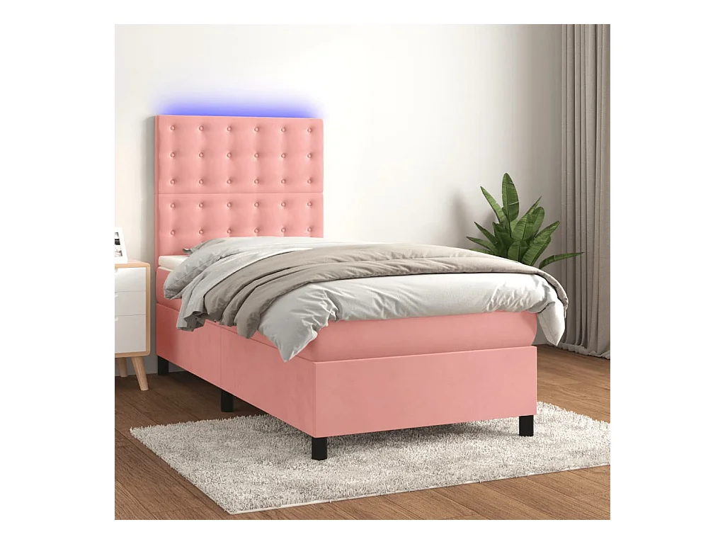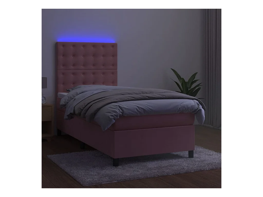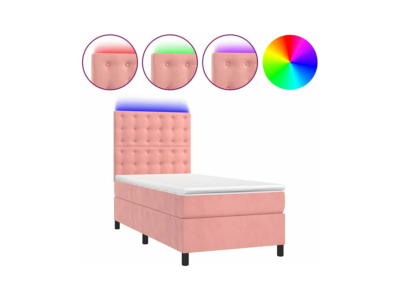 Cama continental c/ colchão/LED 90x200 cm veludo rosa PT268365