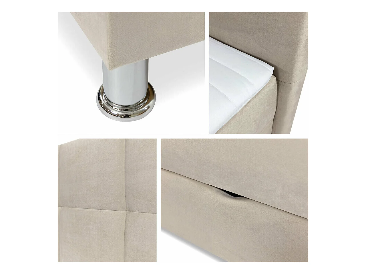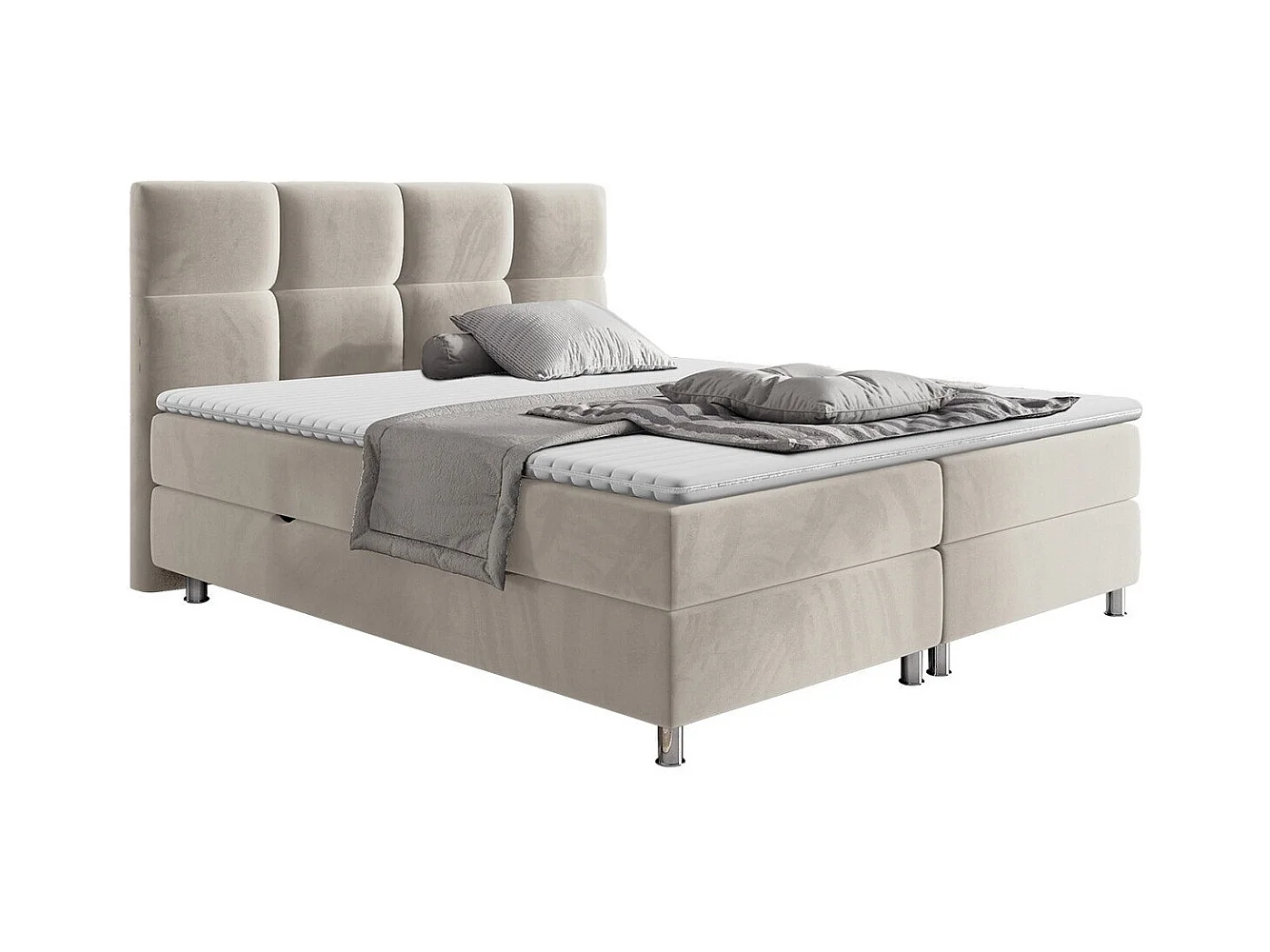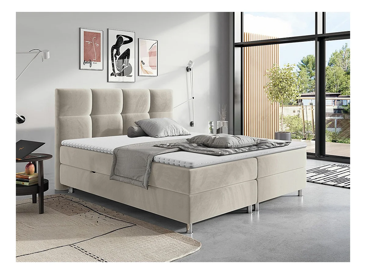 Cama boxspring em tecido e veludo
