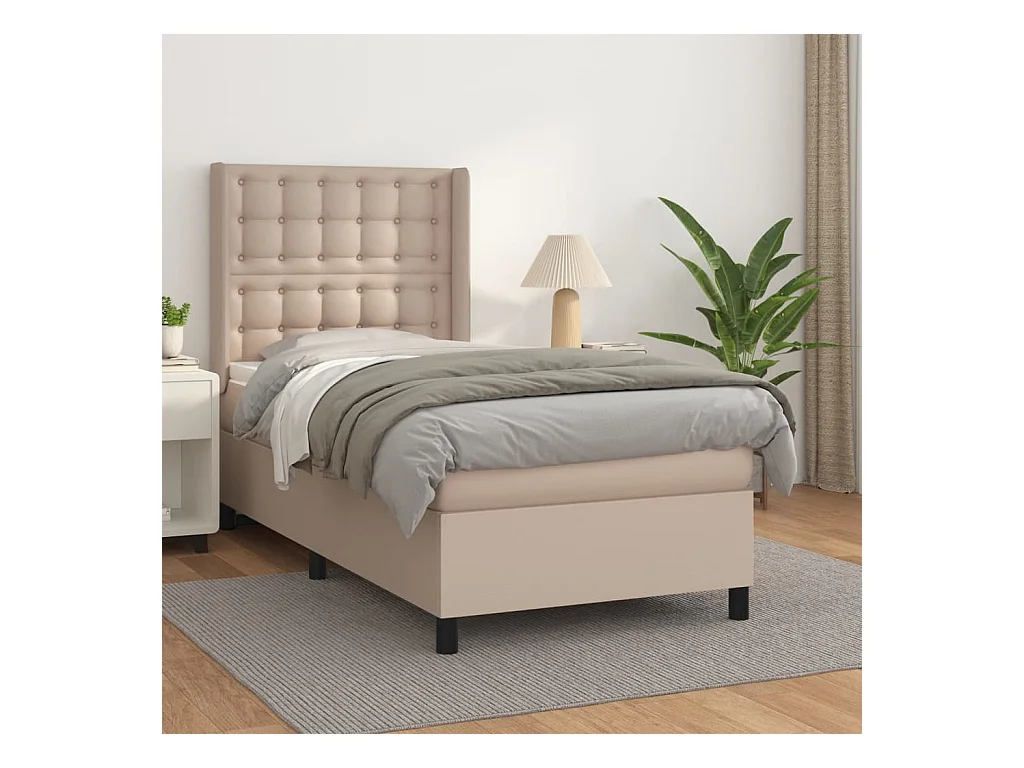 Cama continental com molas+ colchão 90x190 cm couro artificial cappuccino PT141565