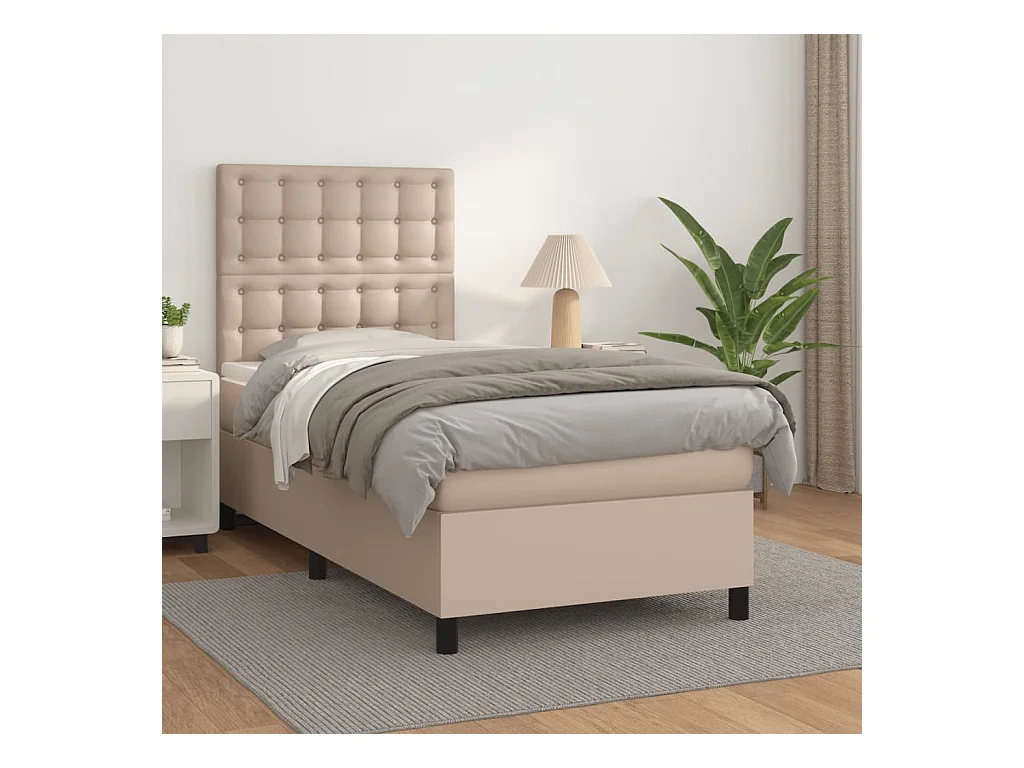 Cama continental com molas+ colchão 90x190 cm couro artificial cappuccino PT141565