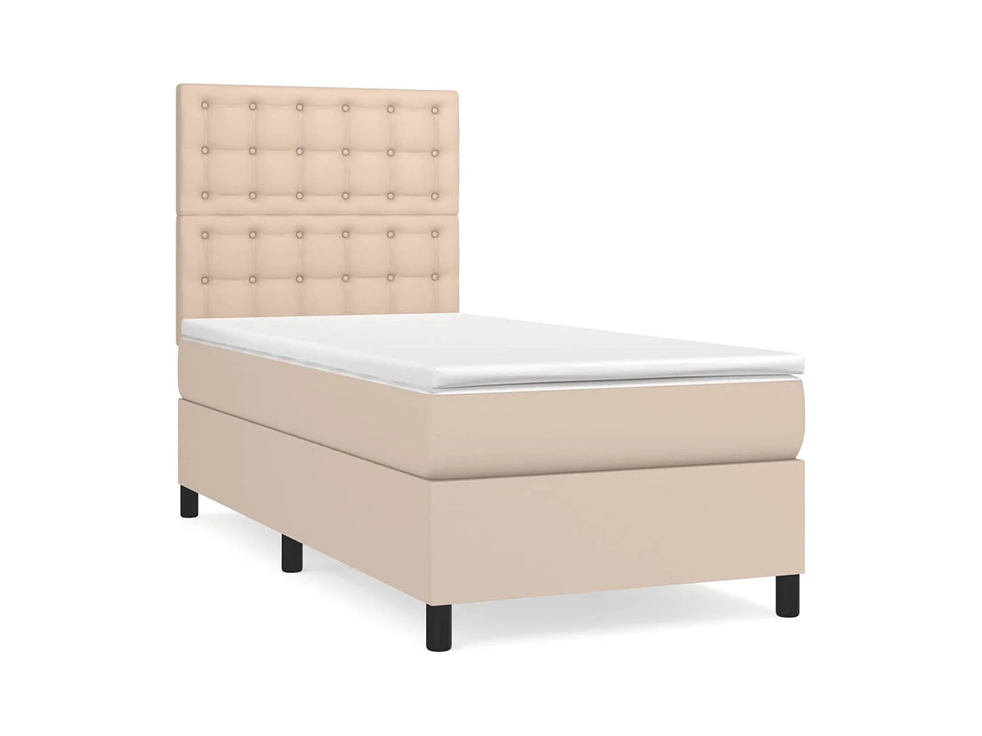 Cama continental com molas+ colchão 100x200 cm couro artificial cappuccino PT536224