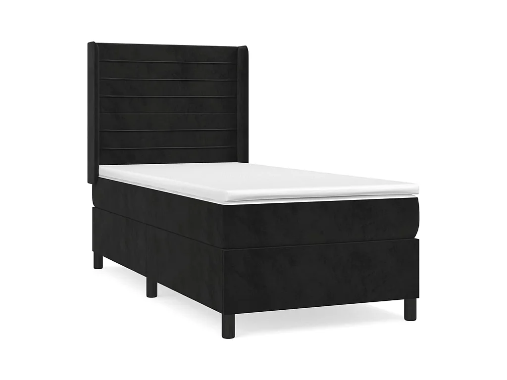Cama continental com molas+ colchão 100x200 cm veludo preto PT774416