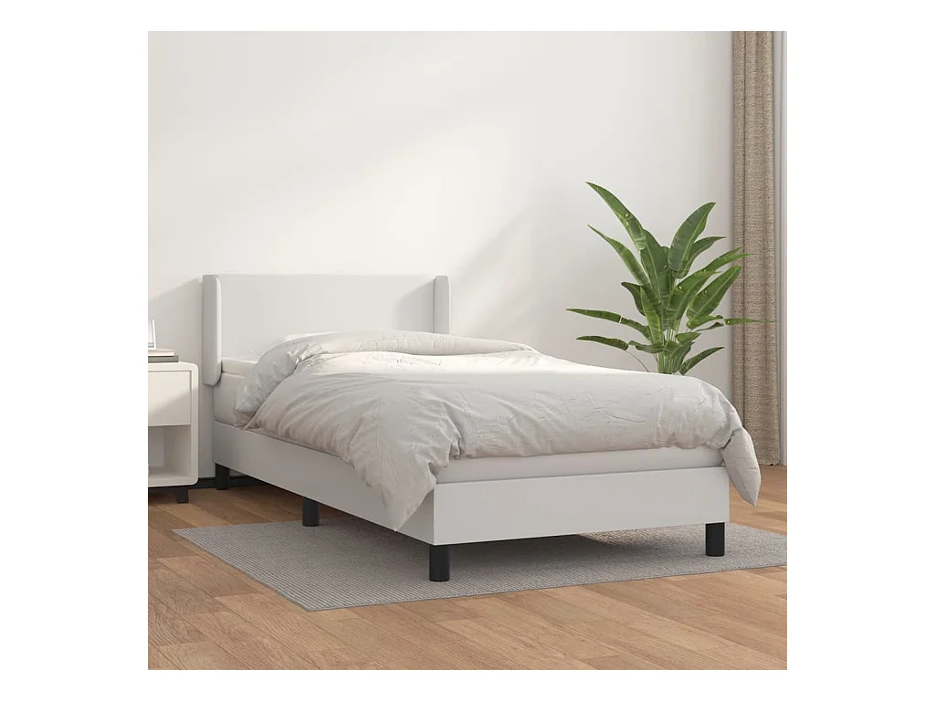 Cama continental com molas+ colchão 80x200 cm couro artificial branco PT586049