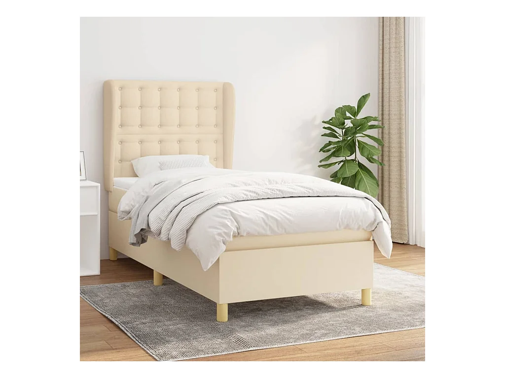 Cama continental com molas+ colchão 80x200 cm tecido cor crème PT913578