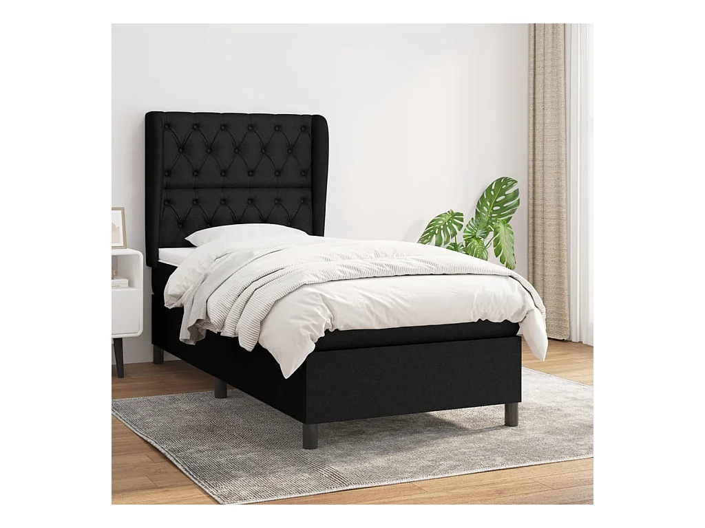 Cama continental com molas+ colchão 80x200 cm tecido preto PT116661