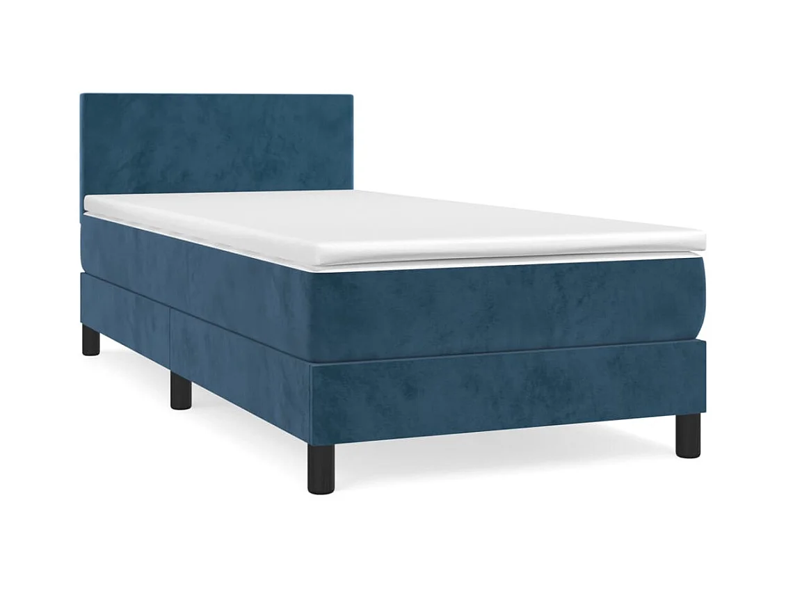 Cama continental com molas+ colchão 80x200 cm veludo azul-escuro PT700249