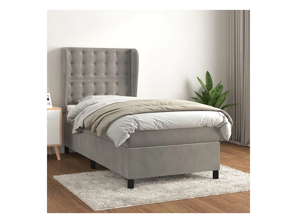 Cama continental com molas+ colchão 90x190 cm veludo cinza-claro PT732709