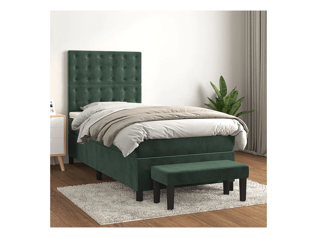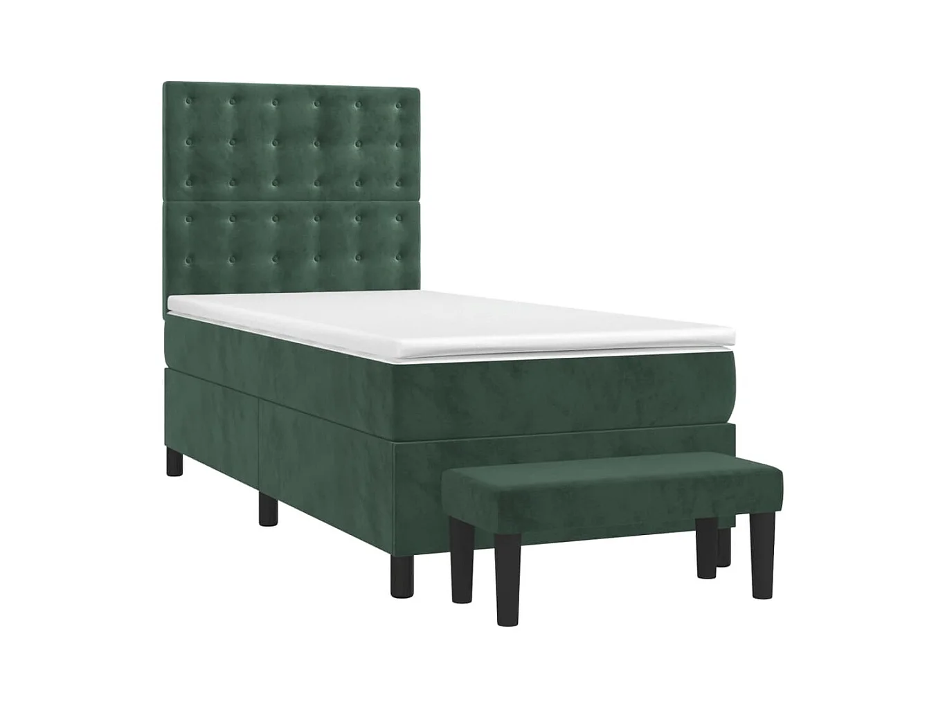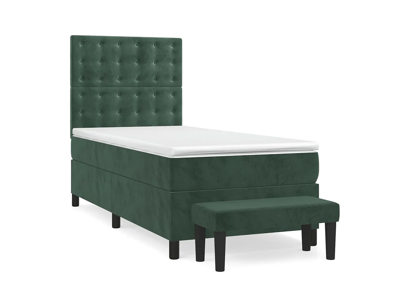 Cama continental com molas+ colchão 90x190 cm veludo verde-escuro PT850083