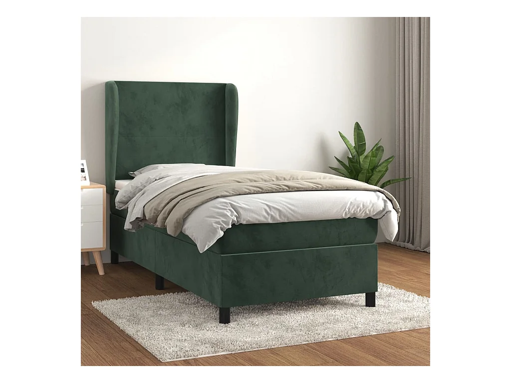 Cama continental com molas+ colchão 90x190 cm veludo verde-escuro PT936079