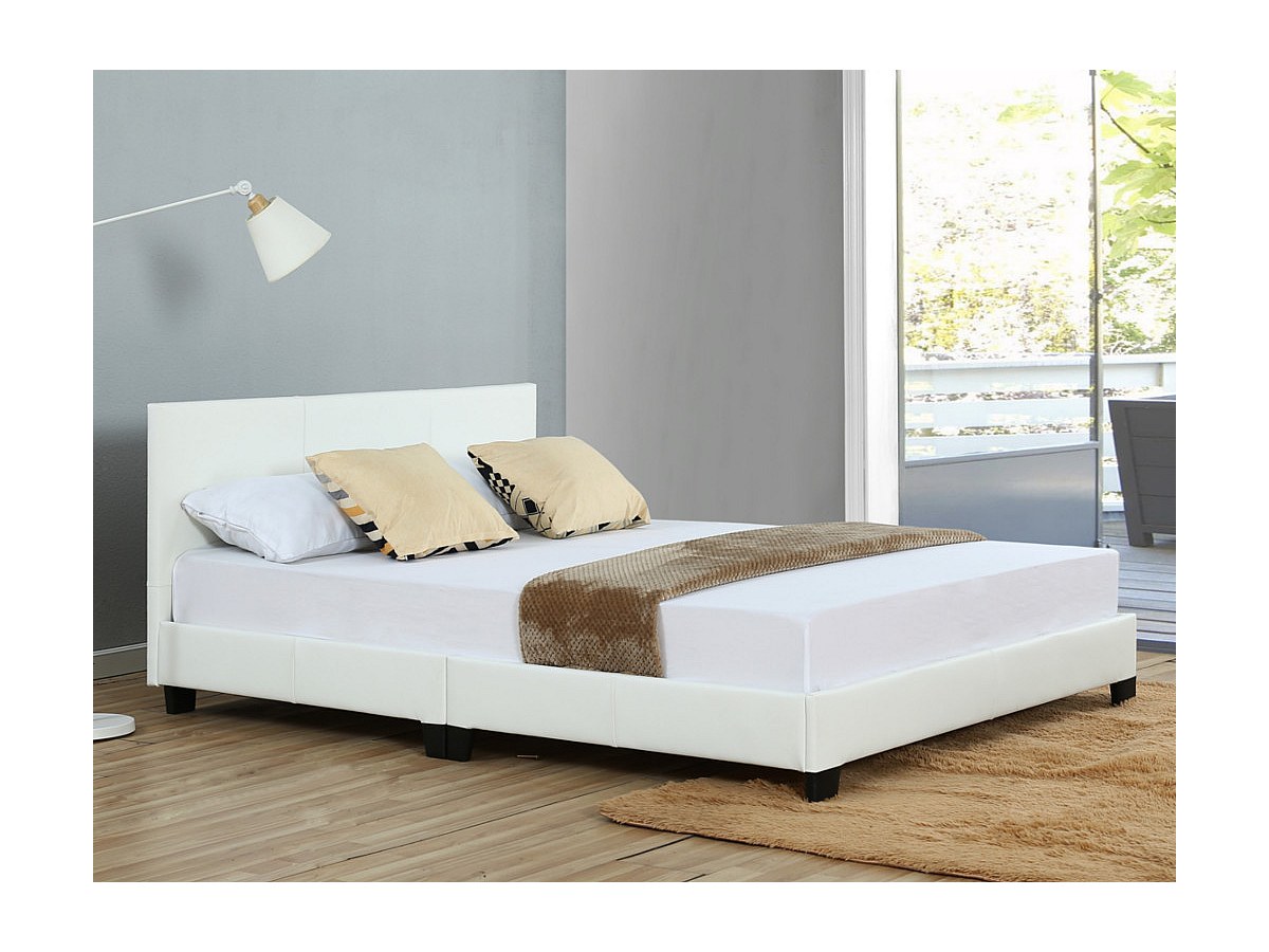 Cama CORNELIUS - 140x190 cm - Pele sintética branco