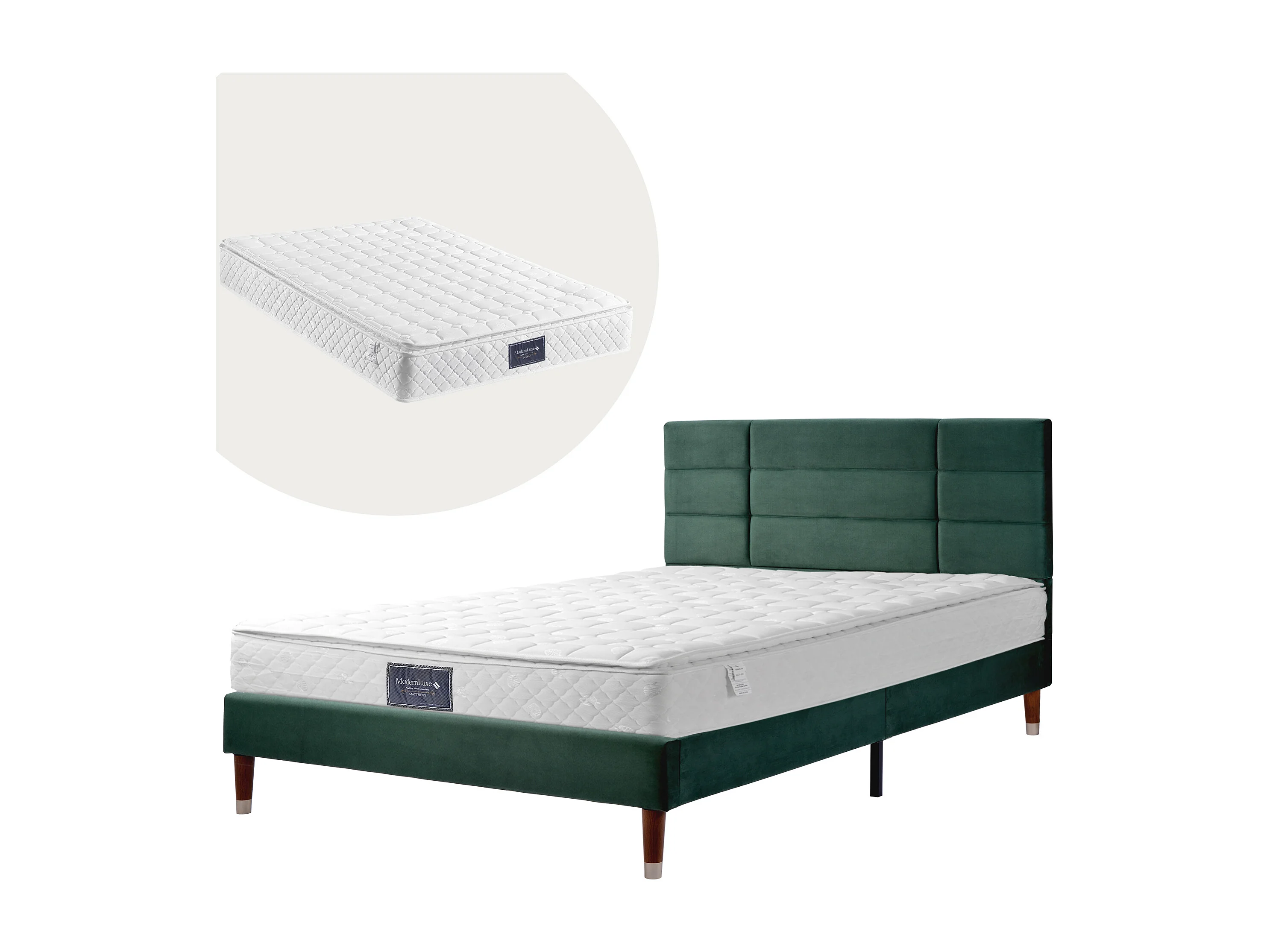 Cama de adulto 140x200 cm com colchão - Cama de criança em veludo verde