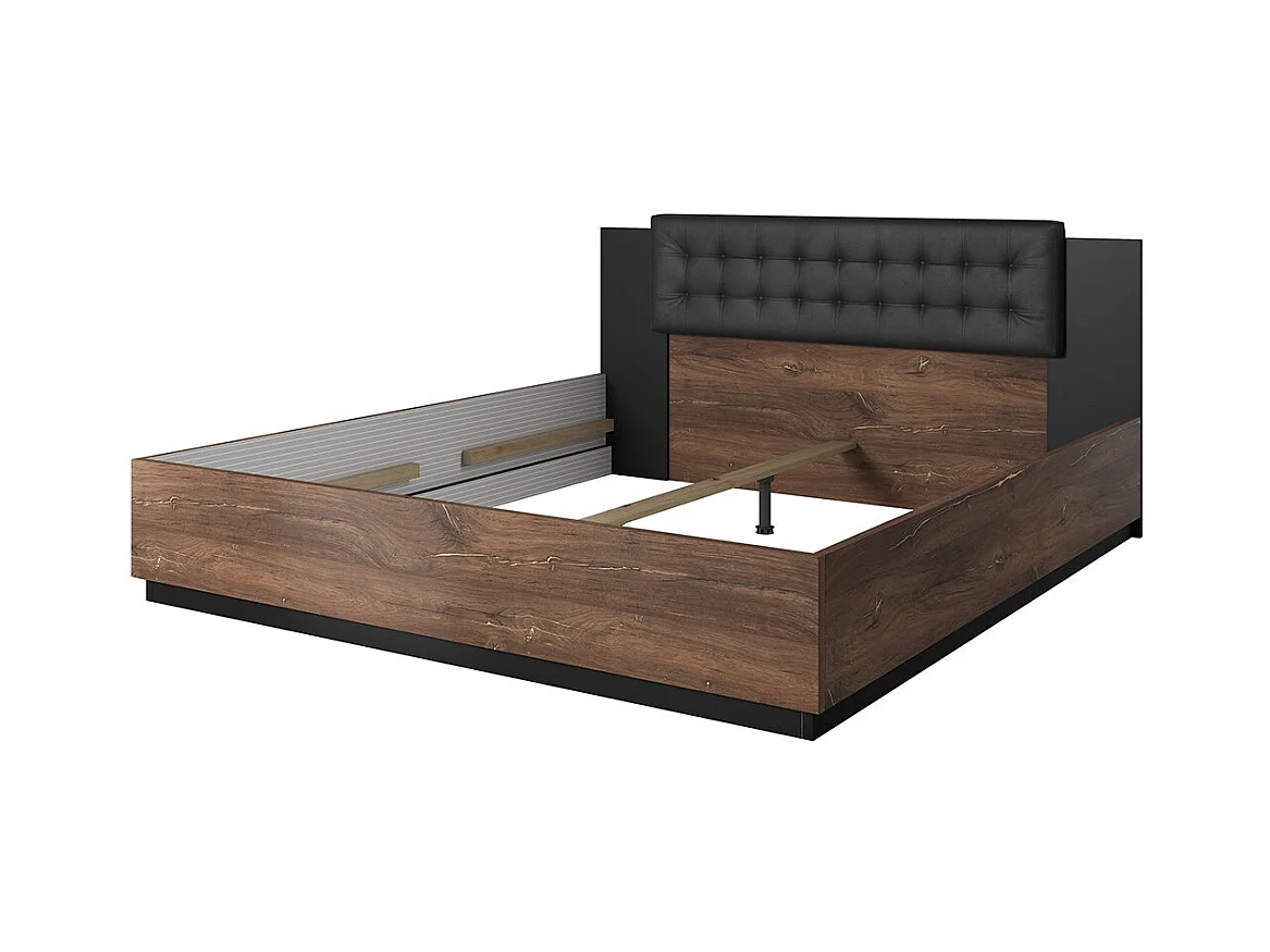 Cama de adulto 140x200 em cor de carvalho escuro e preto da coleção FOX.