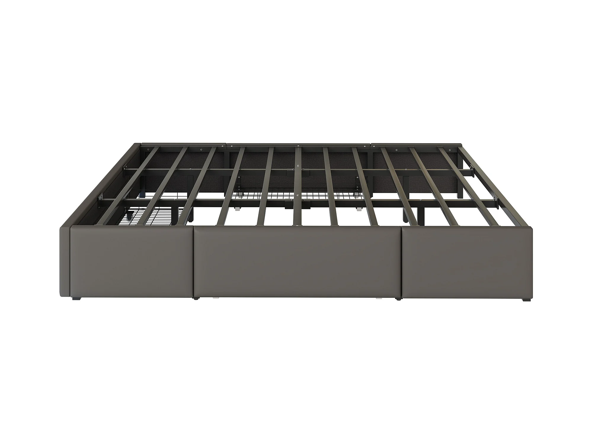 Cama estofada 180x200 cm - com 3 gavetas - em couro PU - sem cabeceira - com luz LED - cinza