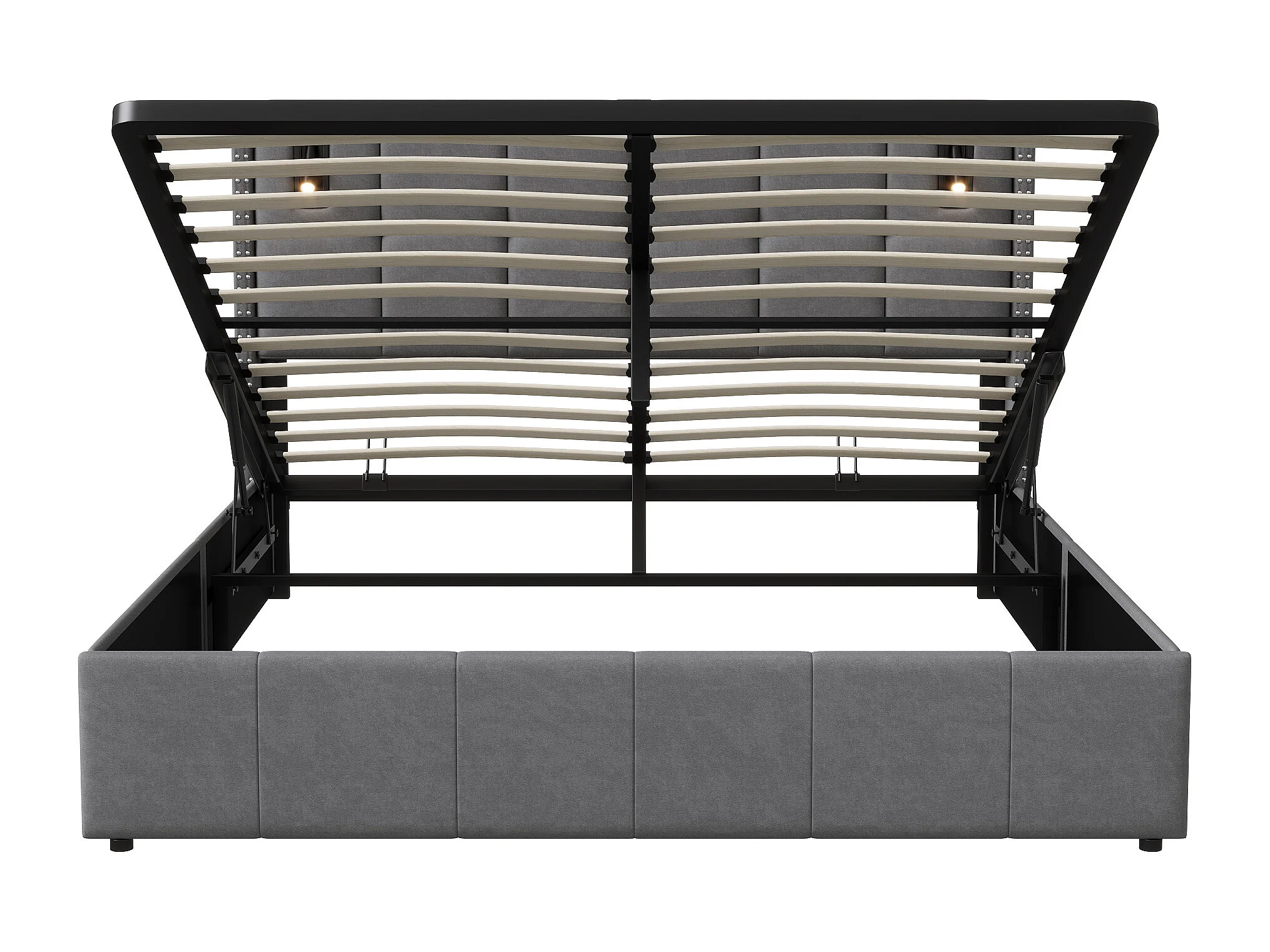 Cama de armazenamento 140x200, cama estofada com LED, USB e cama tipo C, cama de casal, cinza
