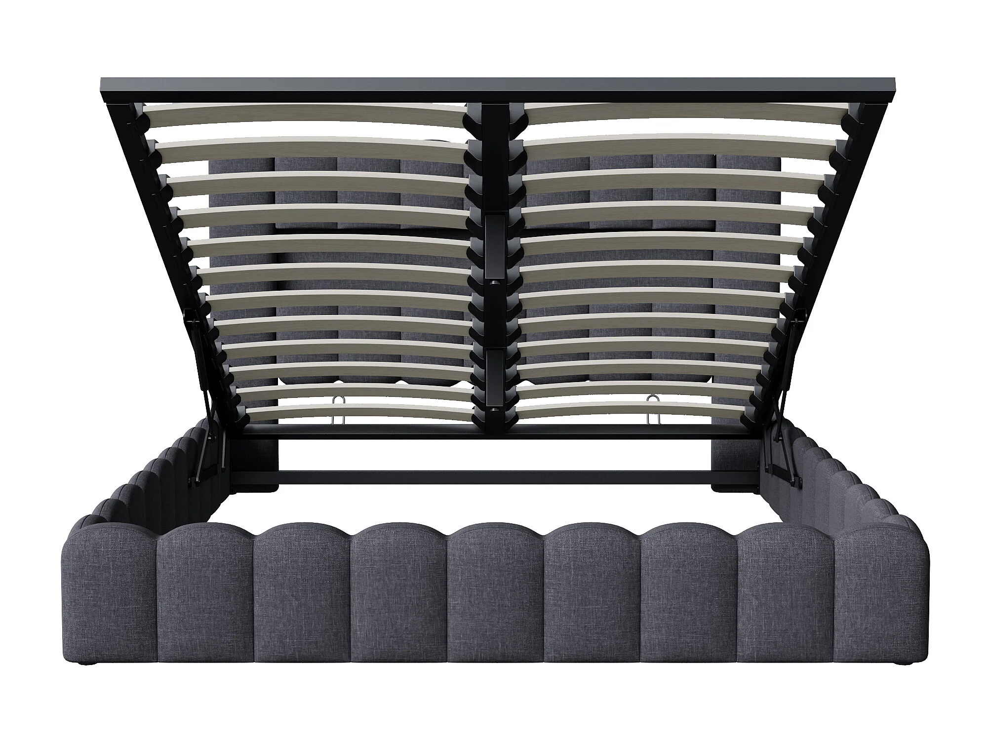 Cama de armazenamento de design em tecido cinza antracite, estilo tronco de árvore, com macacos hidráulicos, cabeceira de LED RGB e portas USB/Tipo C – 160x200 cm
