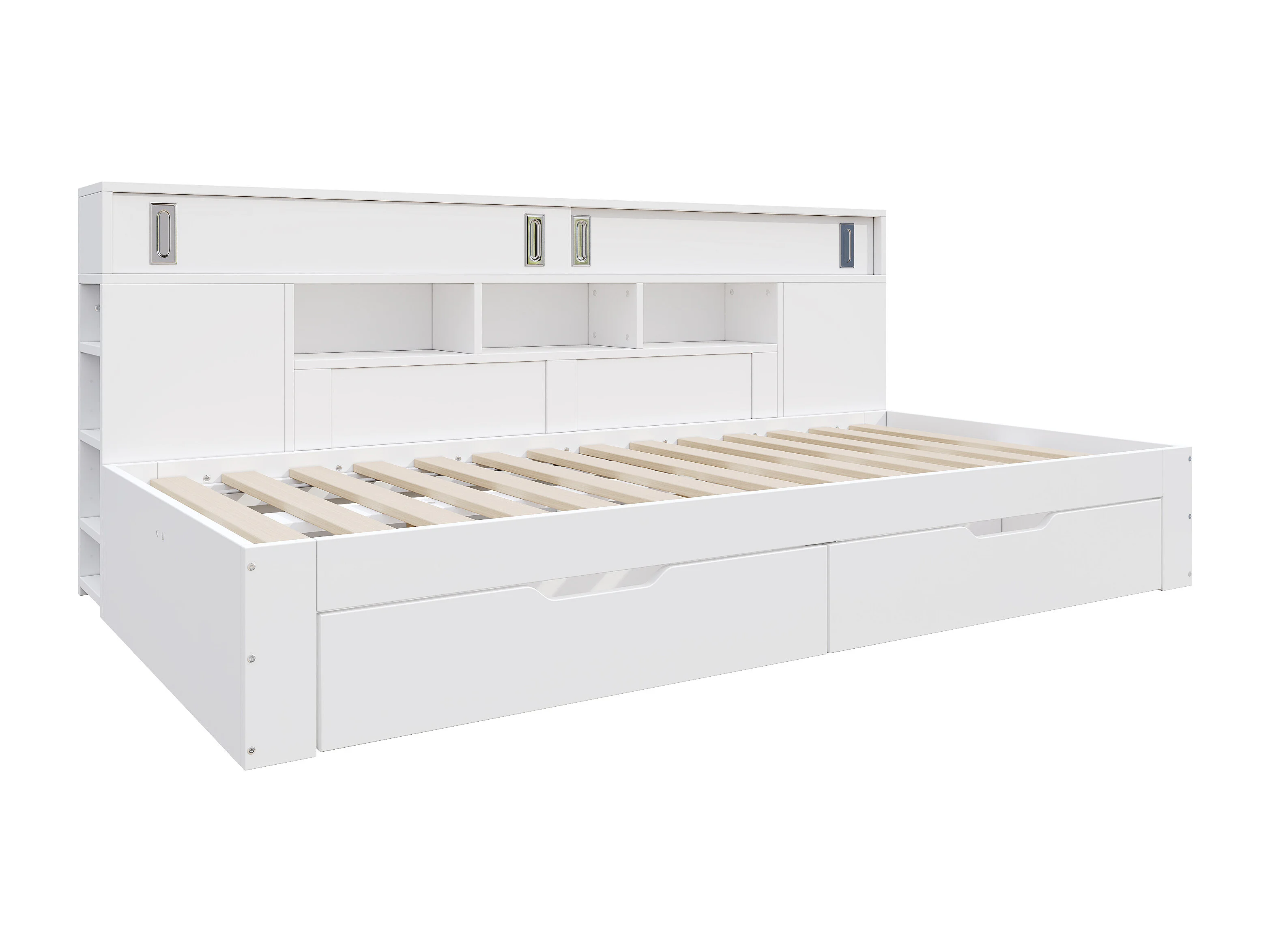 Cama de armazenamento MDF 140x200 cm com gavetas, prateleiras e armazenamento, multifuncional, branca, sem colchão