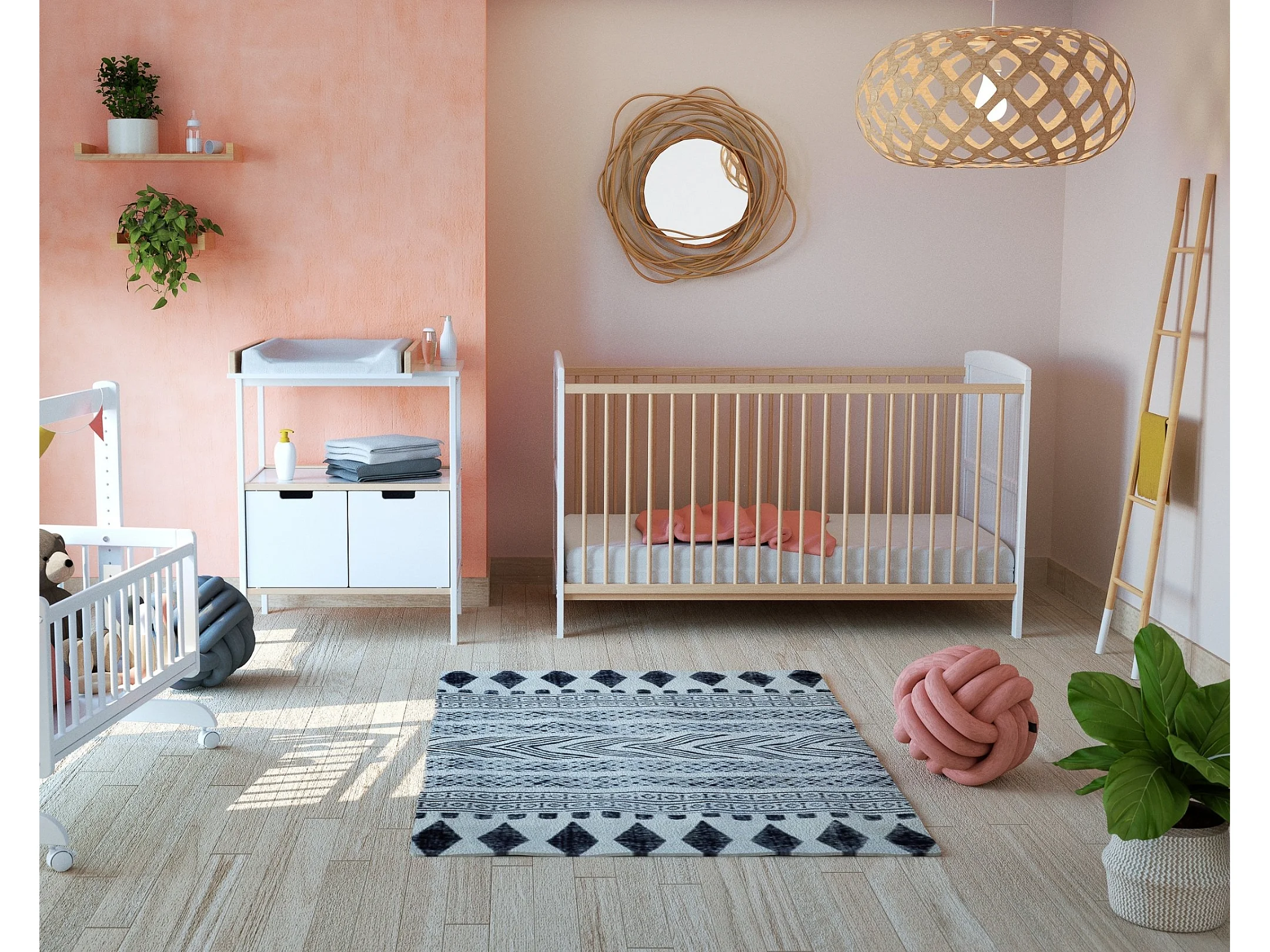 Cama de bebe convertível ESSENTIEL de madeira Branco e Faia 70 x 140 cm