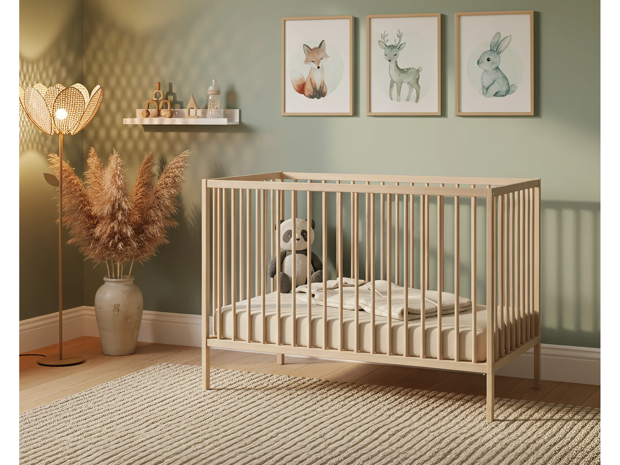 Cama de bebe de madeira Faia em bruto 60 x 120 cm ONE