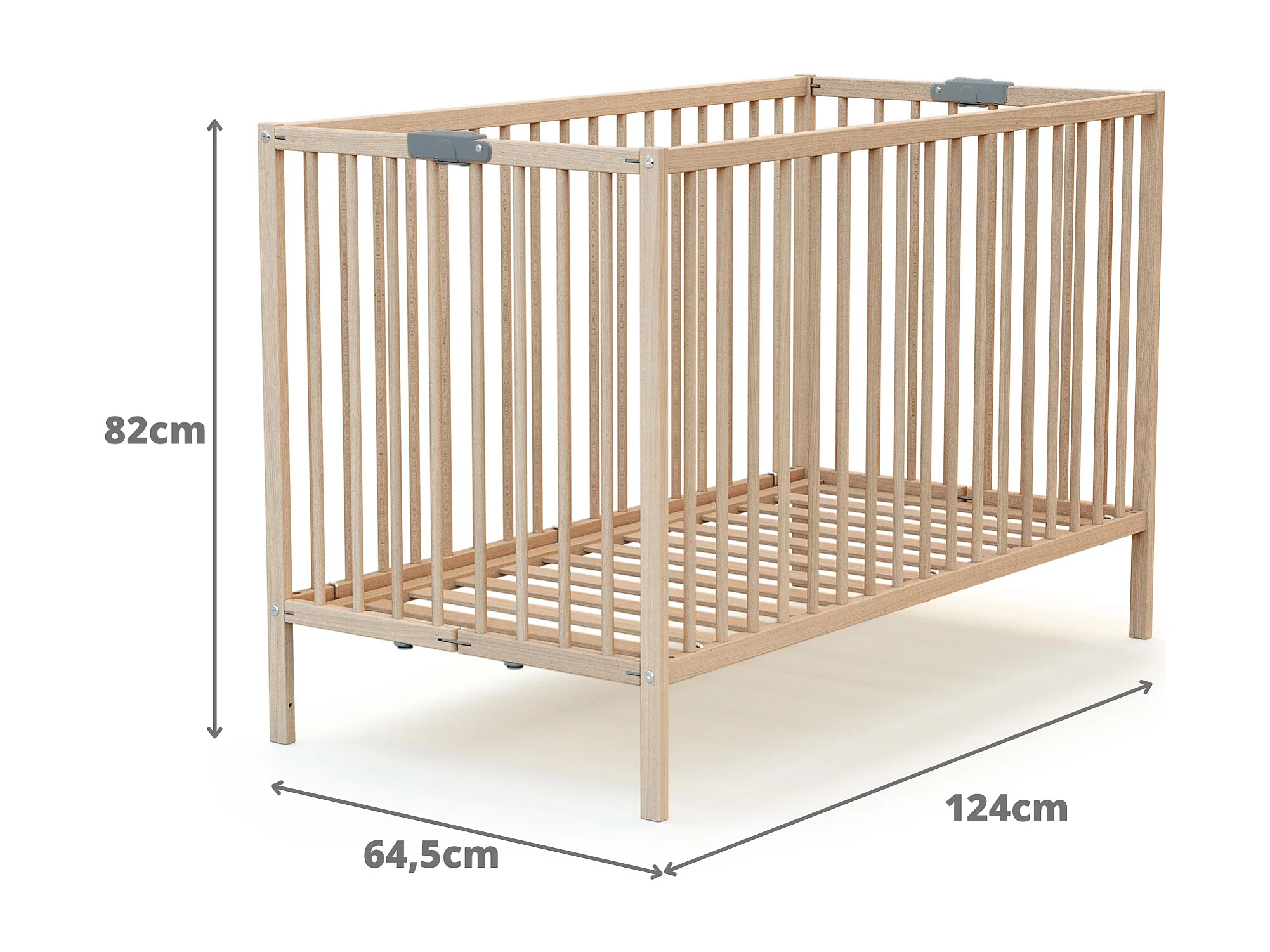 Cama de bebe dobrável de madeira Faia em bruto 60 x 120 cm FLEX