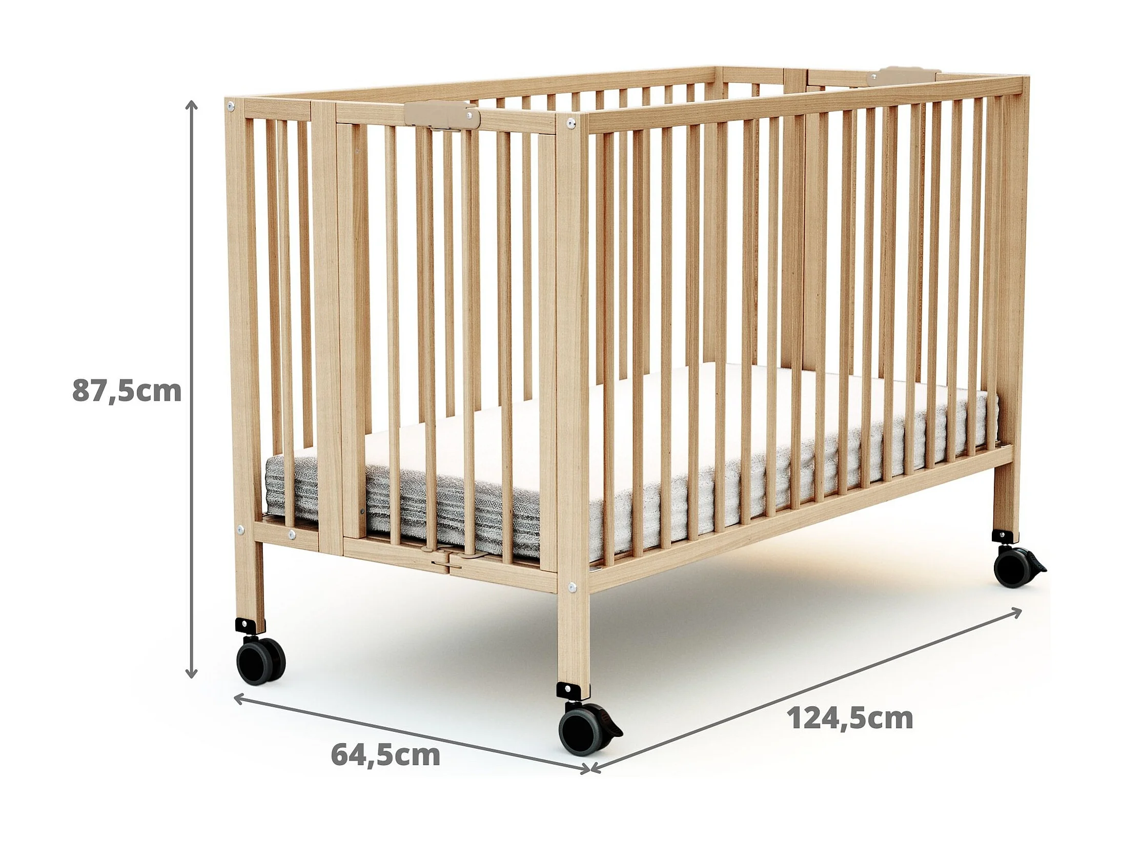 Cama de bebe dobrável FLOW de madeira Faia envernizada 60 x 120 cm