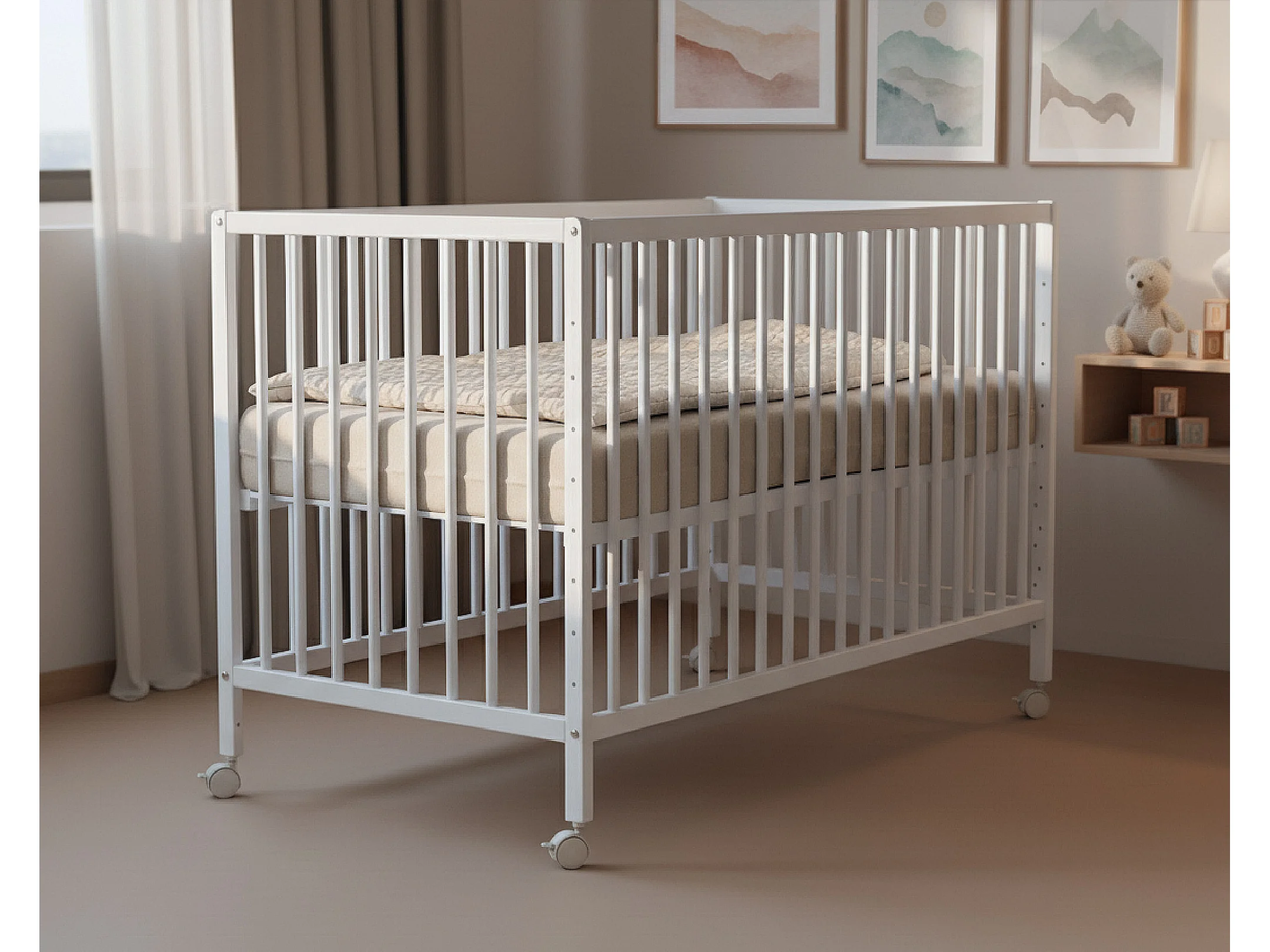 Cama de bebe para dormir em conjunto de madeira Branco 60 x 120 cm LIO